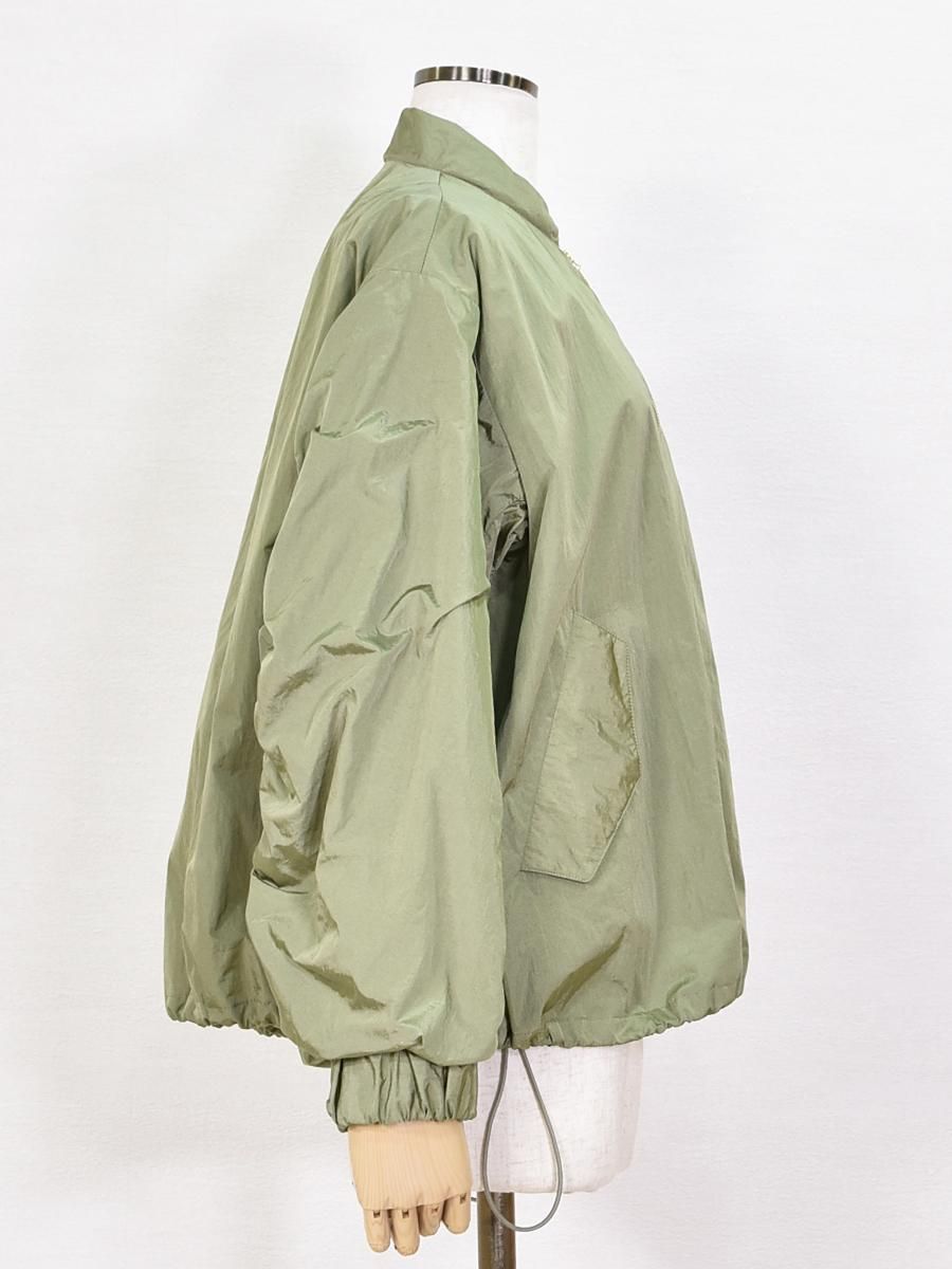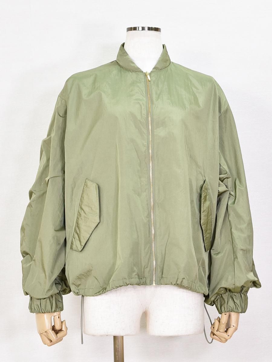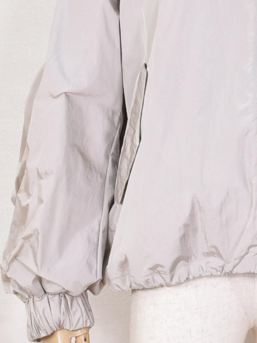 PASSIONE(パシオーネ)の袖口裾ドロストZIPブルゾン。光沢感のあるシャカシャカのナイロン生地です。