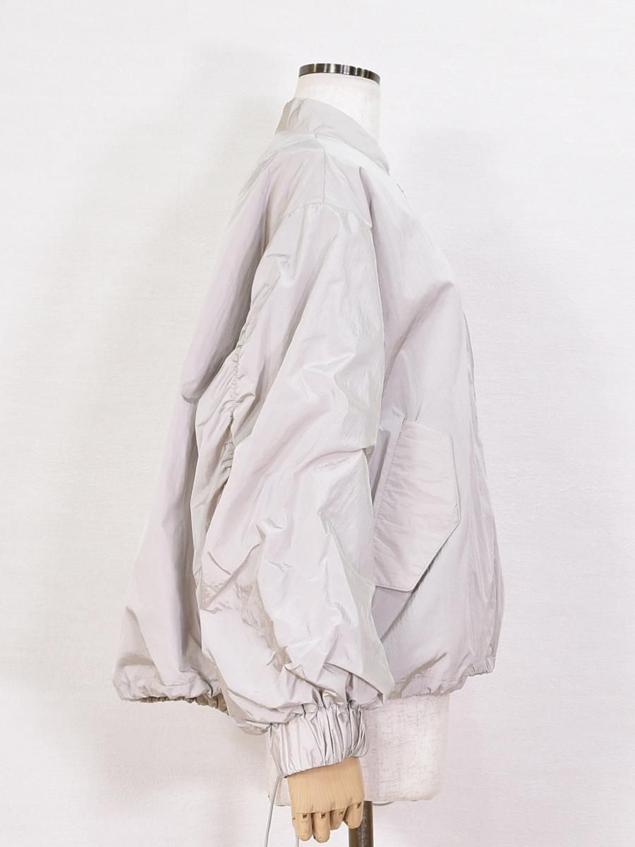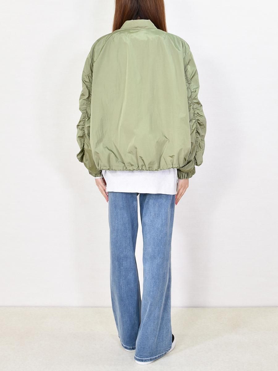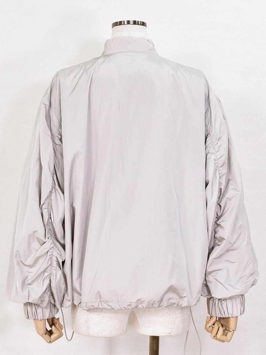 PASSIONE(パシオーネ)の袖口裾ドロストZIPブルゾン。光沢感のあるシャカシャカのナイロン生地です。