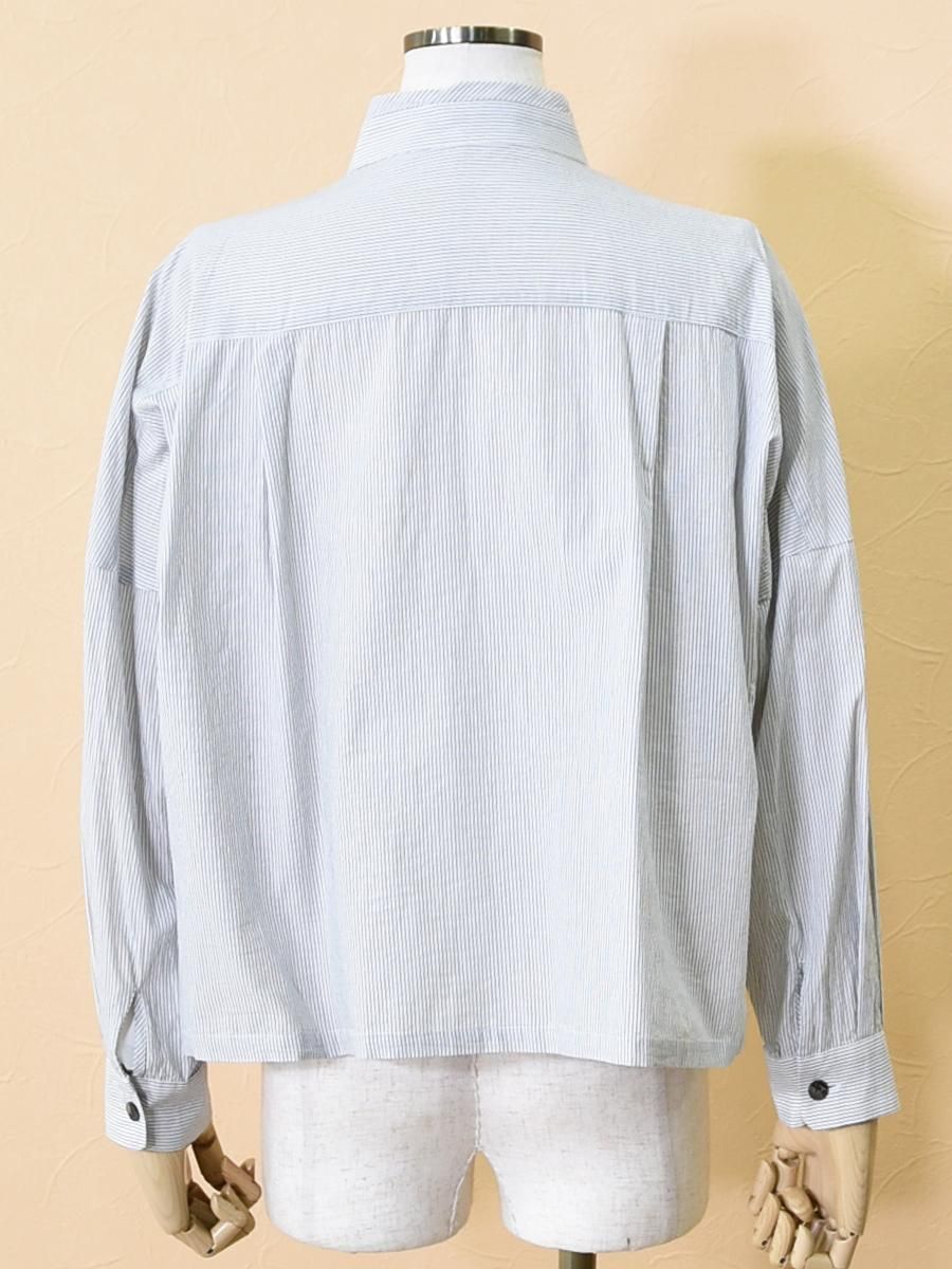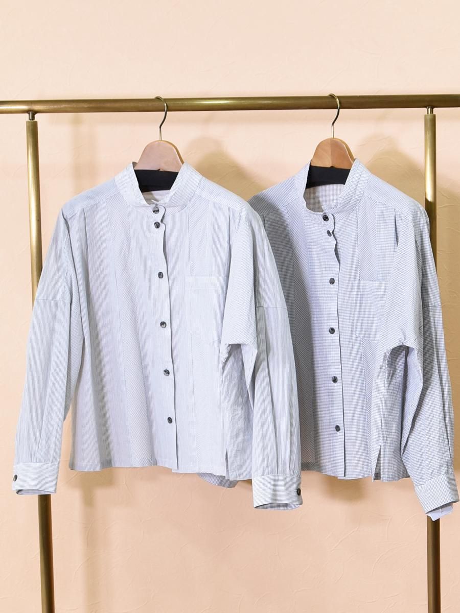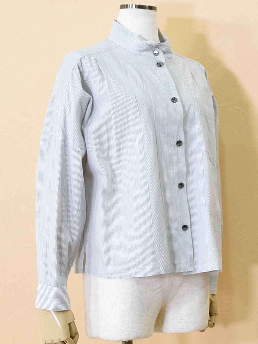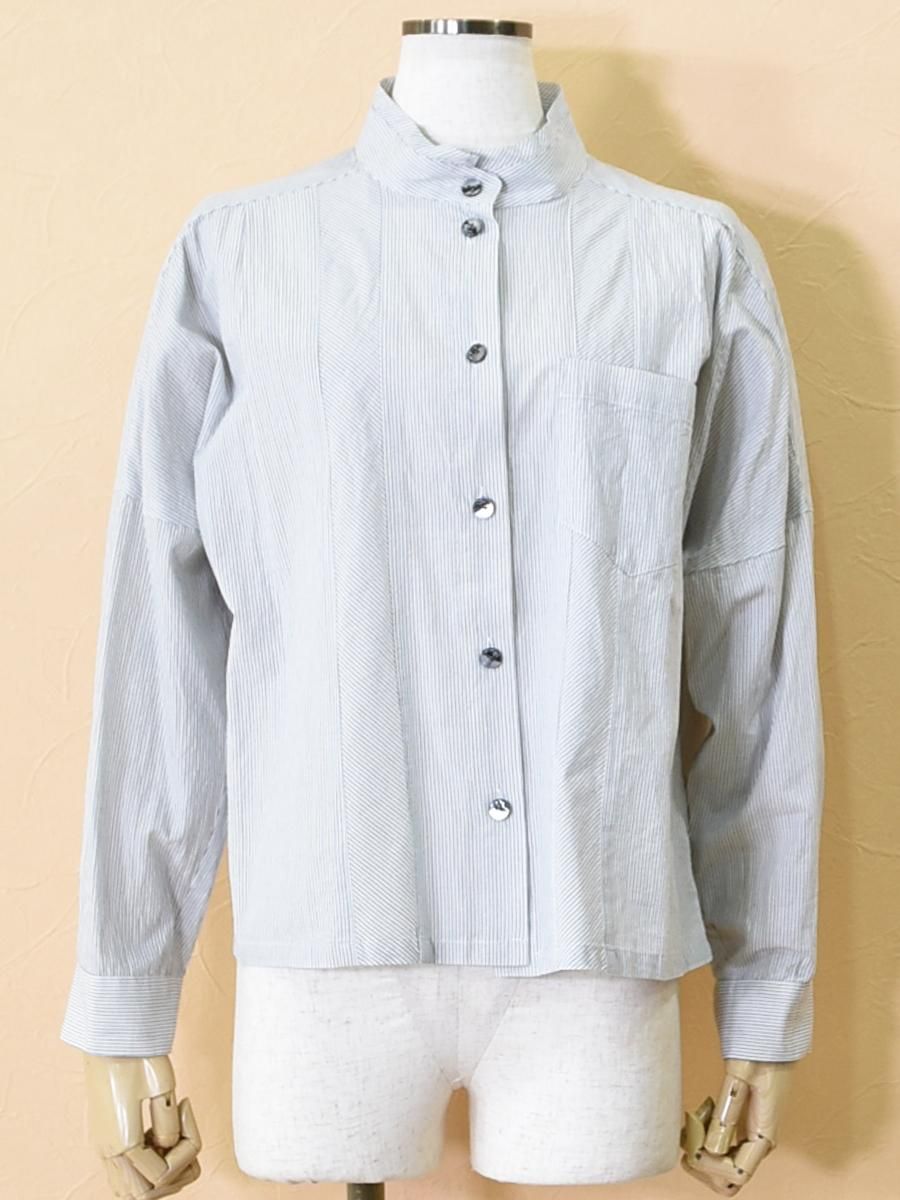 pripera(プリペラ)のスタンドカラーブラウス。ストライプを縦方向と斜め方向で切り替えたオシャレな1枚。