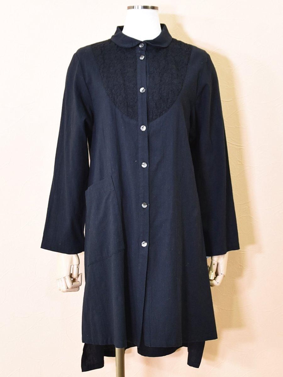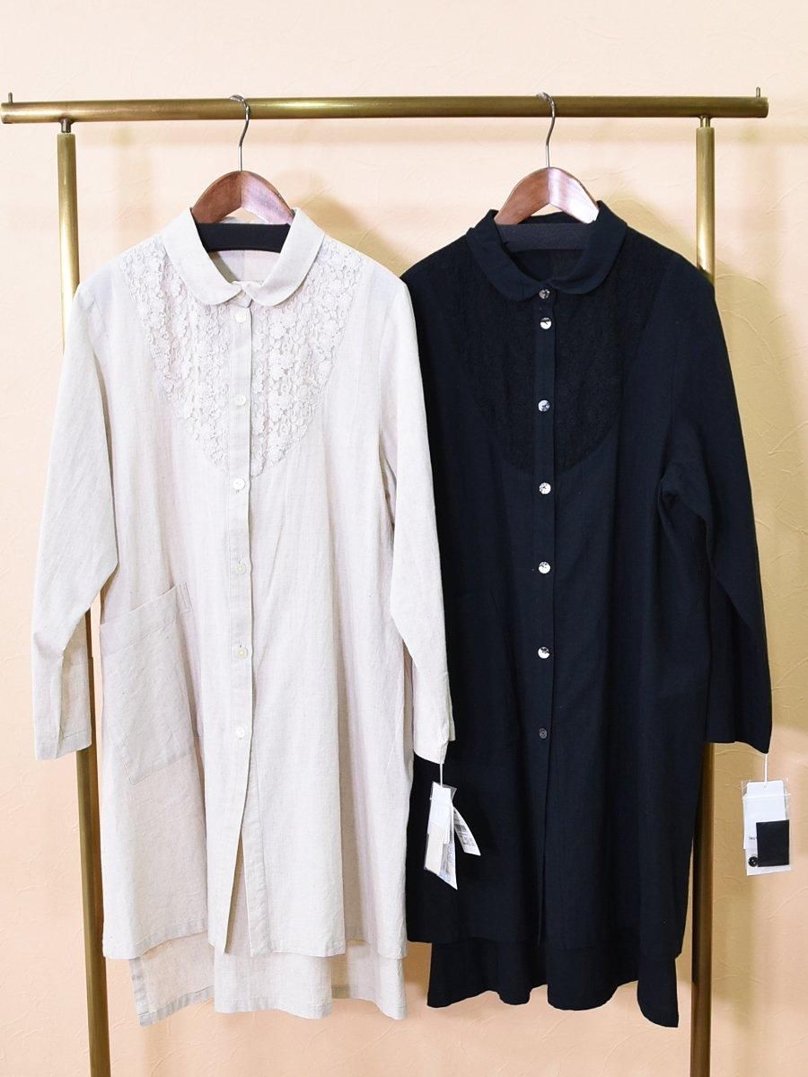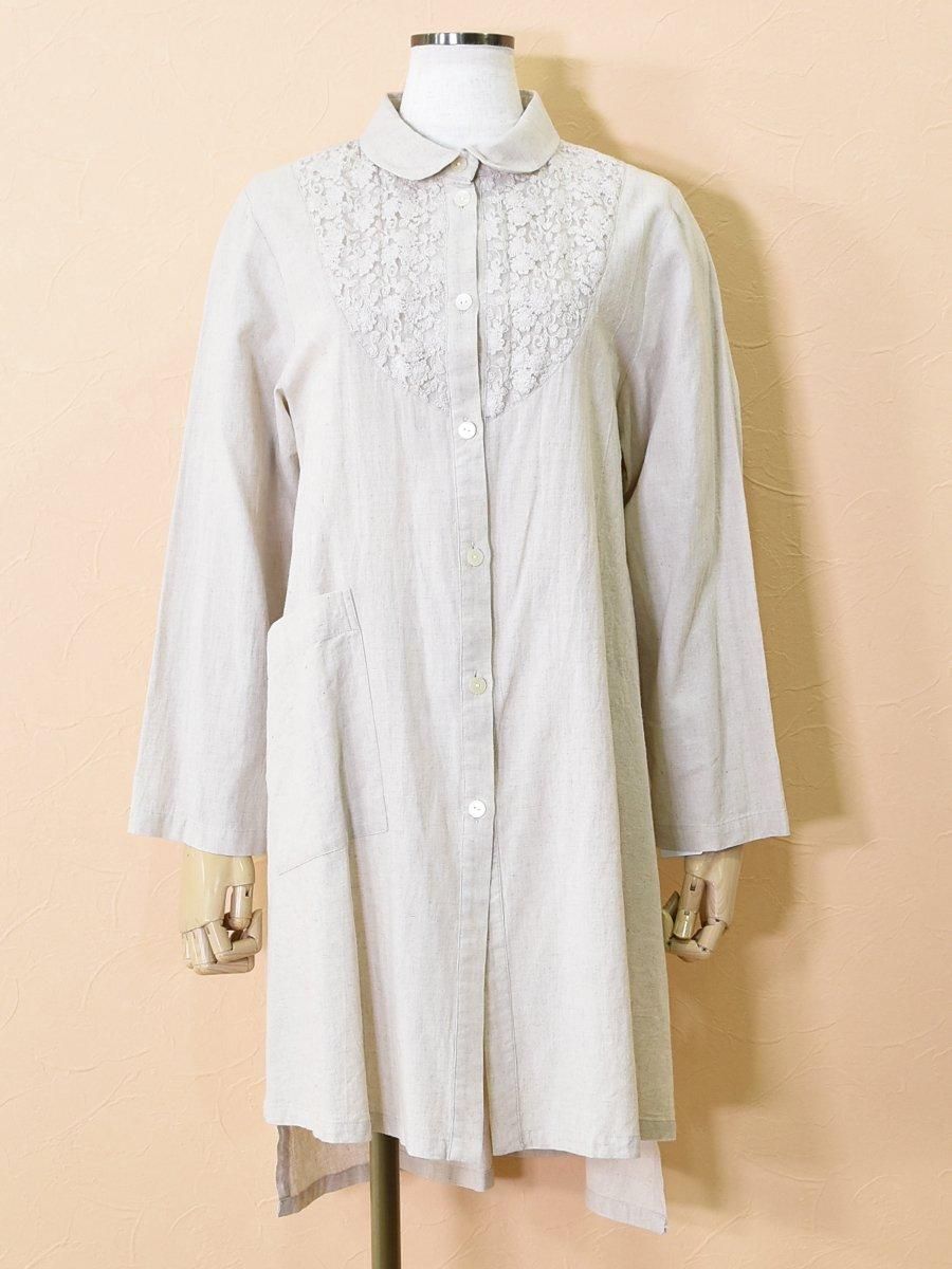 pripera(プリペラ)のレース切替シャツチュニック。さらりとドライタッチで柔らかい素材感。