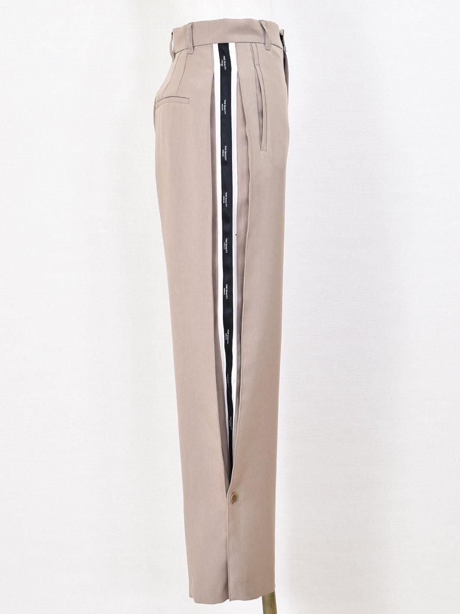 ANGELINA(アンジェリーナ)のサイドロゴテープセミワイドパンツ。サイドラインのオリジナルロゴテープデザインがポイント。