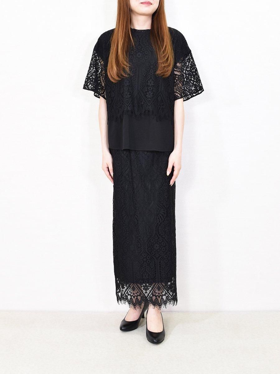 T241-82049(ケミカルレースハーフスリーブプルオーバー)とセットアップで着用するとオケージョンにも◎。