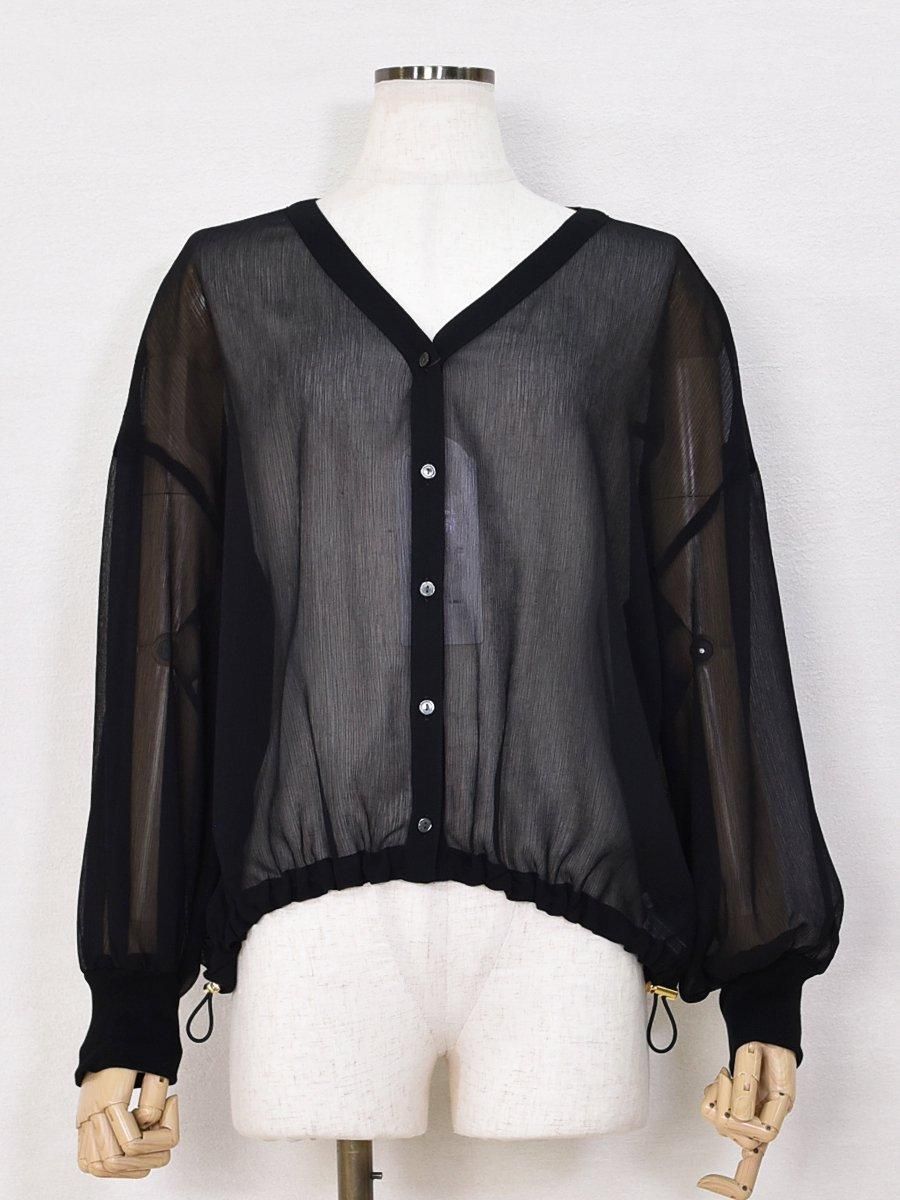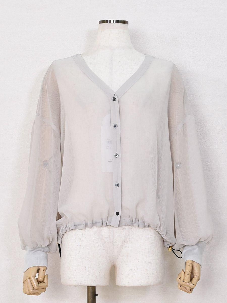 trois(トロワ)のVネック楊柳プリントジョーゼットブラウス。程よい透け感が特徴の柔らかなジョーゼットを使用。