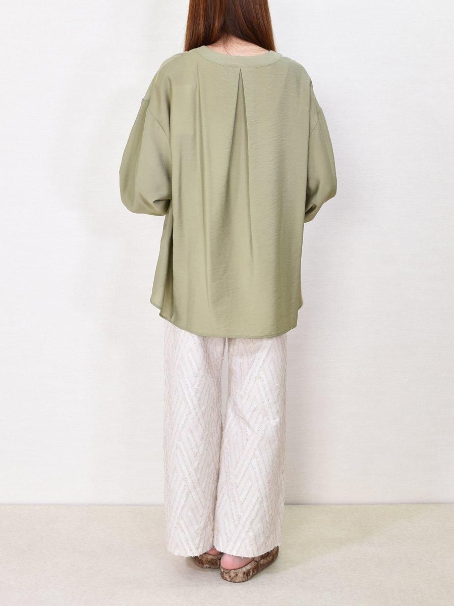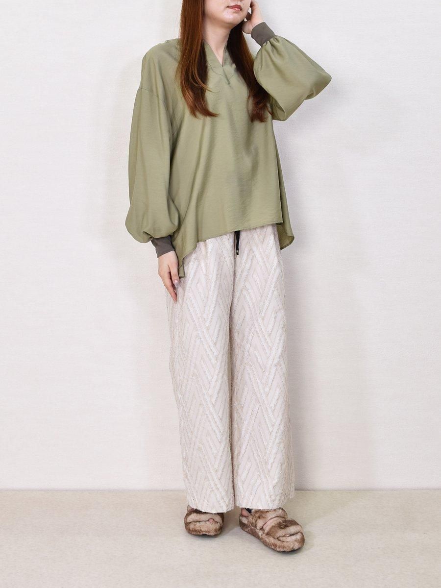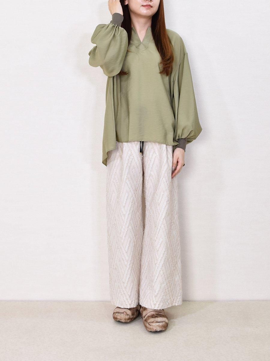 (trois)キーネック袖リブブラウス