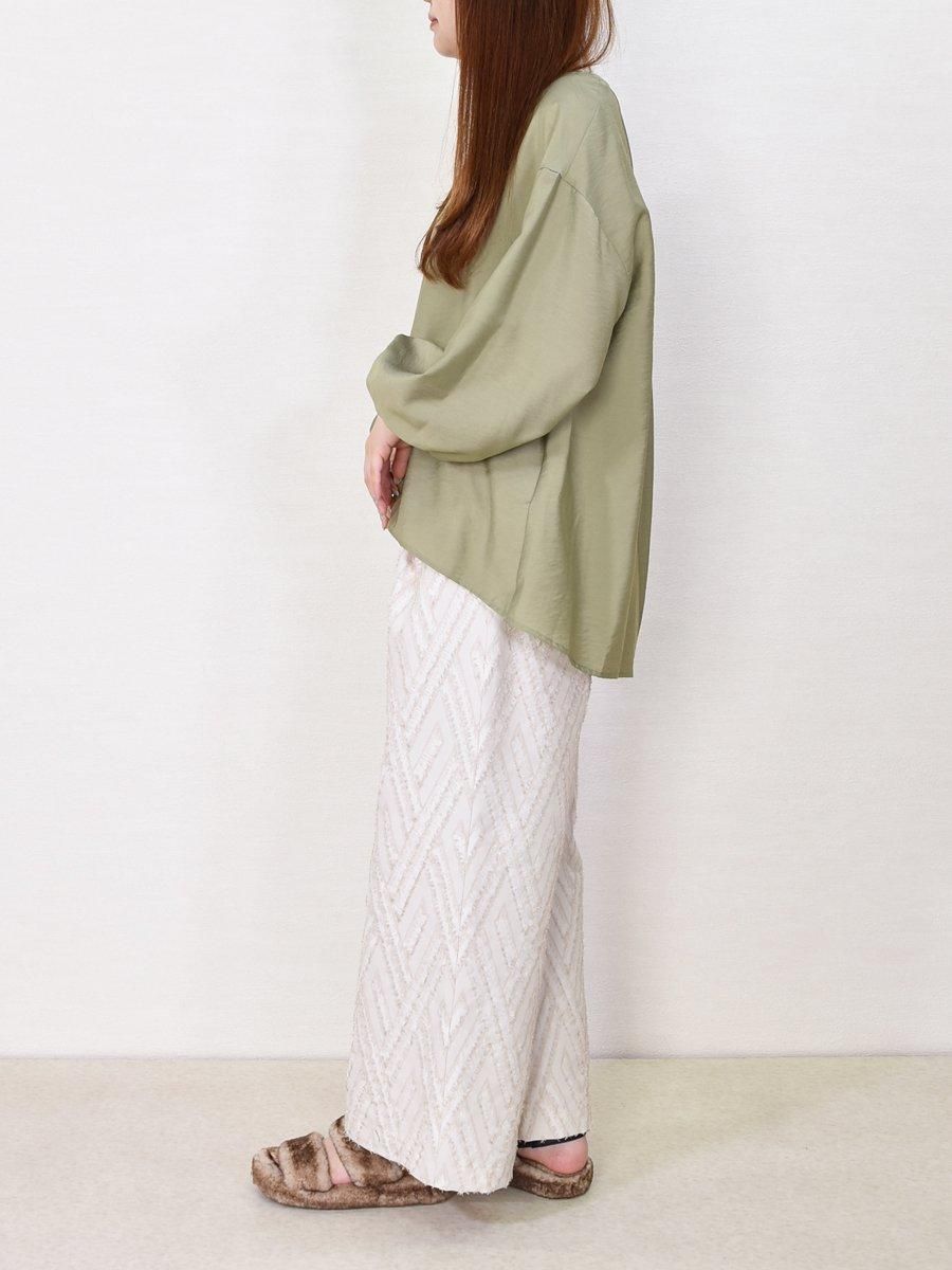 trois(トロワ)の幾何学柄ジャガードワイドパンツ。大胆な幾何学柄が目を引く毛足長めのカットジャガード素材。