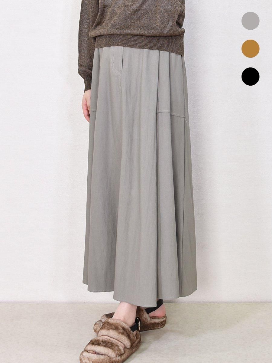 RILATO(リラート)のリブフレアスカート。さらりと軽いレーヨンナイロン素材のシンプルなスカート。