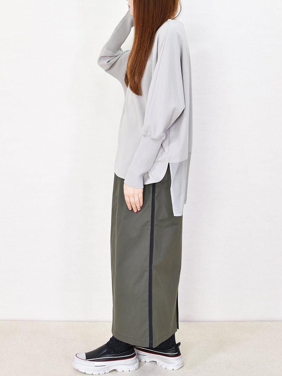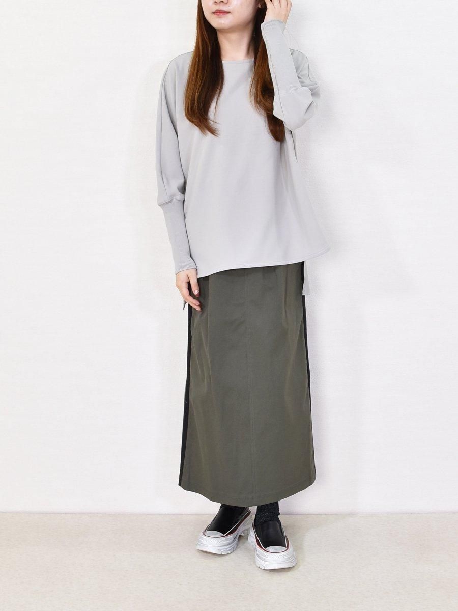 trois(トロワ)のサイドラインタイトスカート。表面に産毛を纏ったような優しく温かみのある風合い。