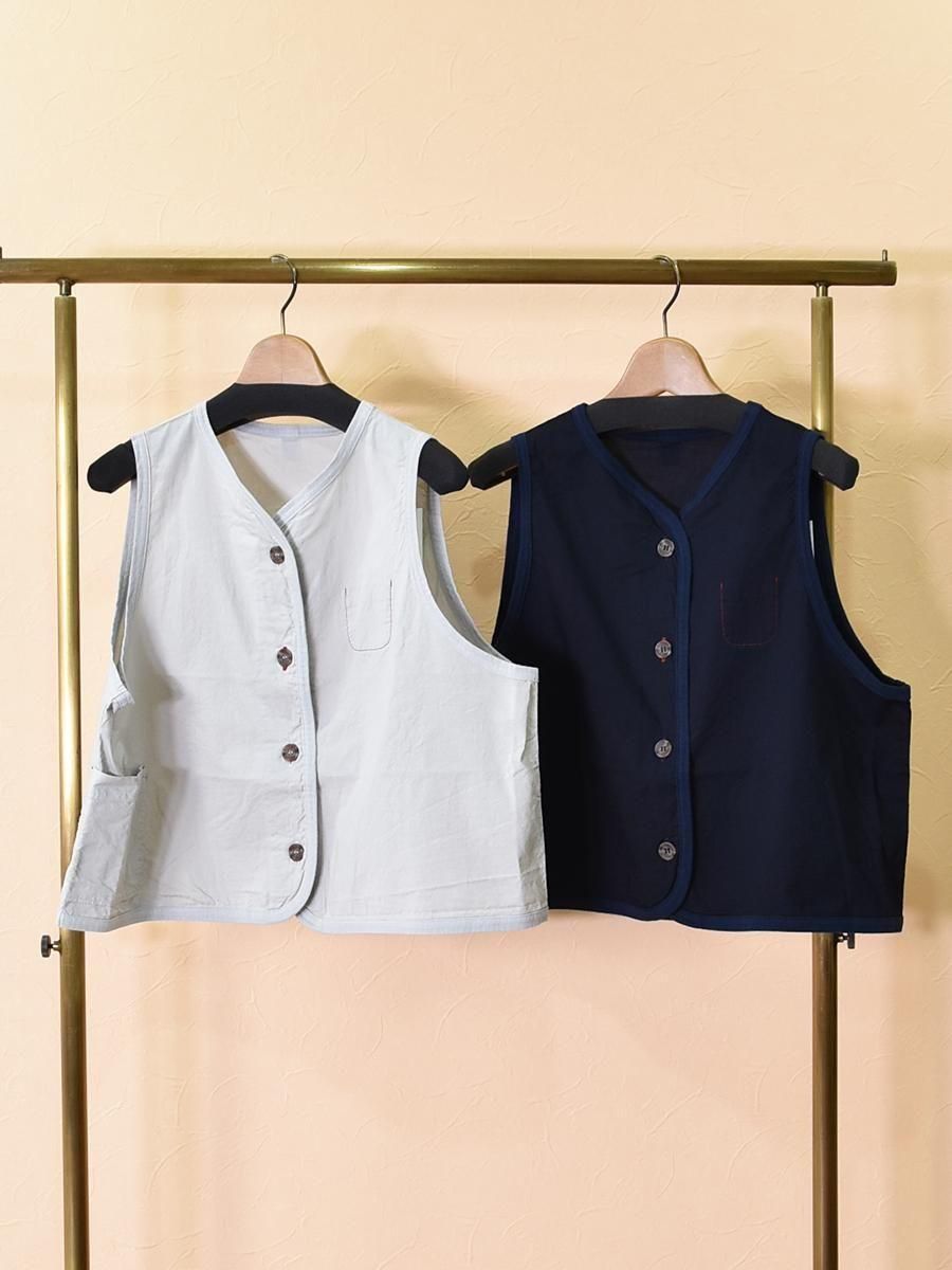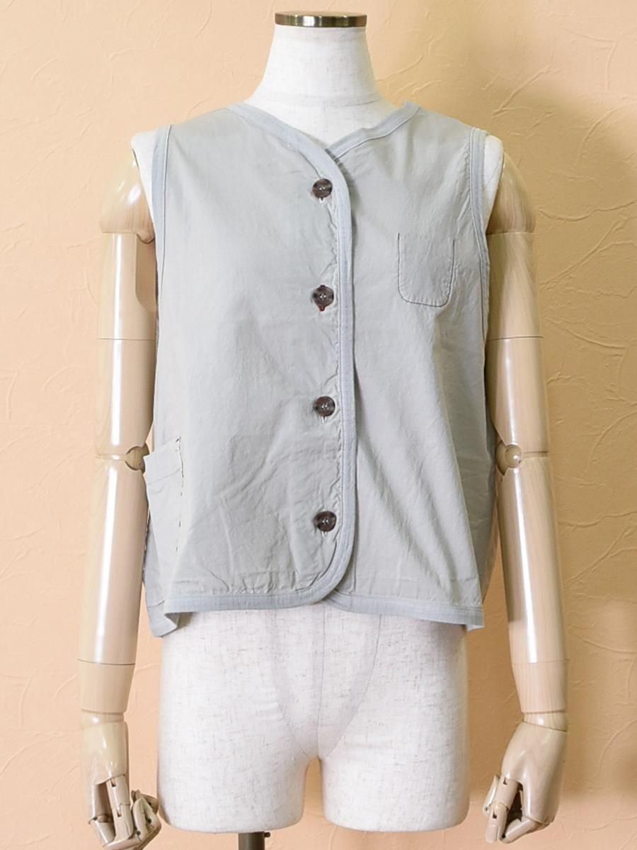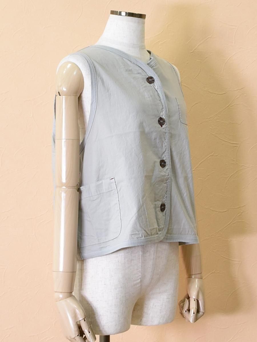 pas a pas(パスアパス)のポケット付きベスト。前開きのボタン仕様で、Vネックのすっきりとしたラインが特徴。