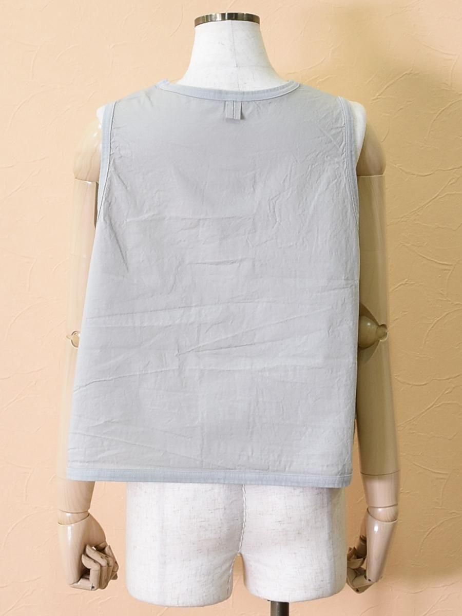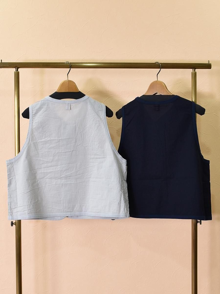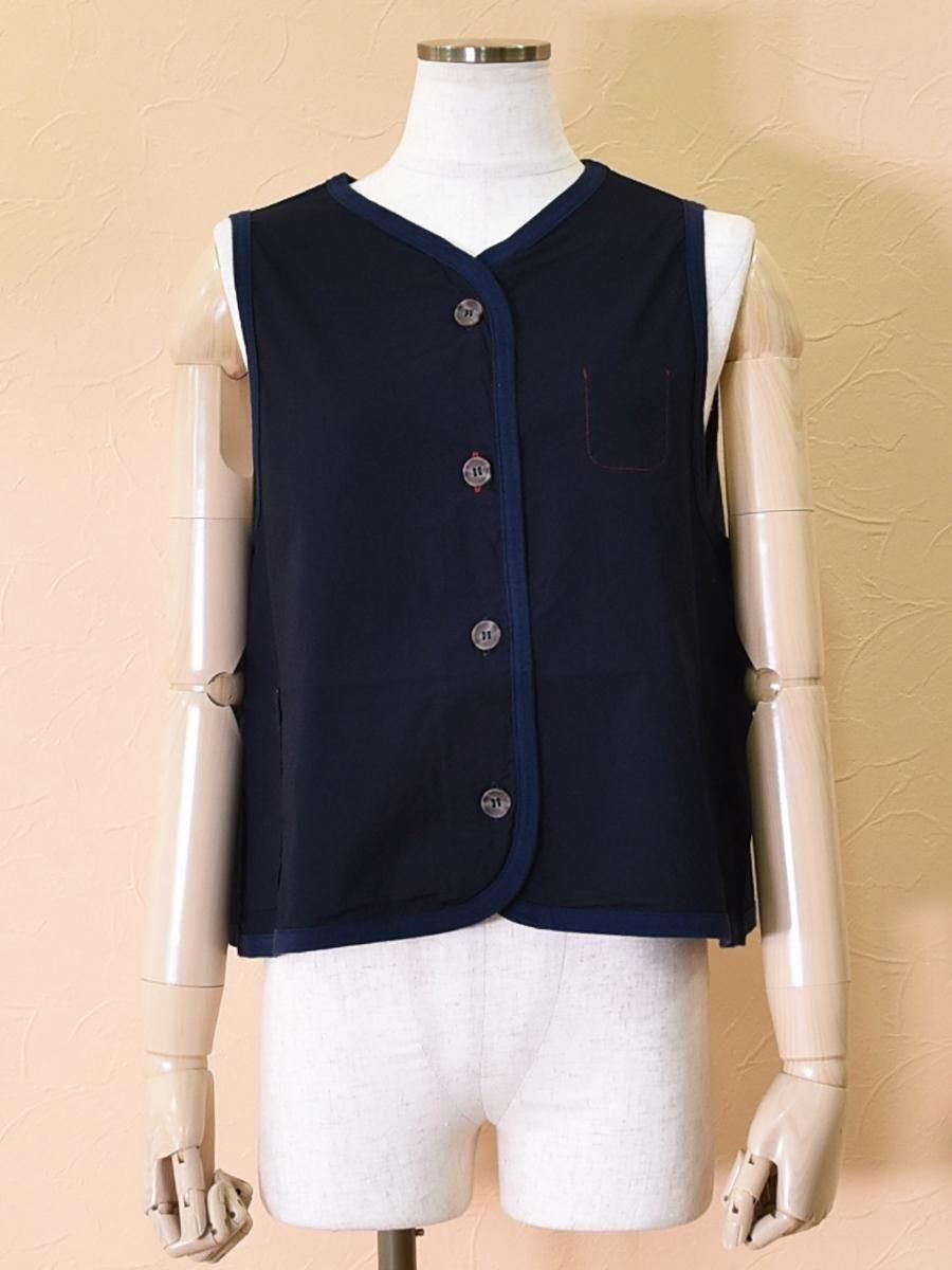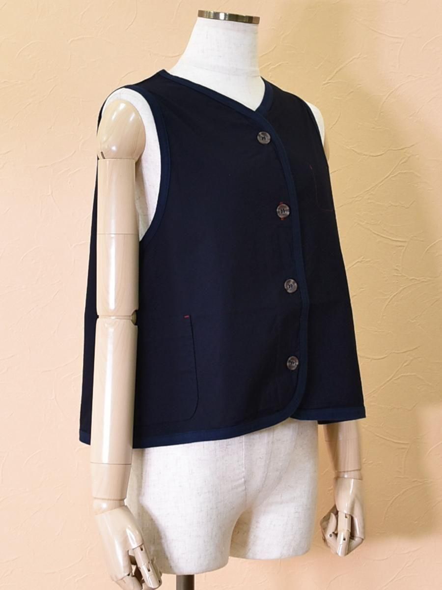 pas a pas(パスアパス)のポケット付きベスト。前開きのボタン仕様で、Vネックのすっきりとしたラインが特徴。