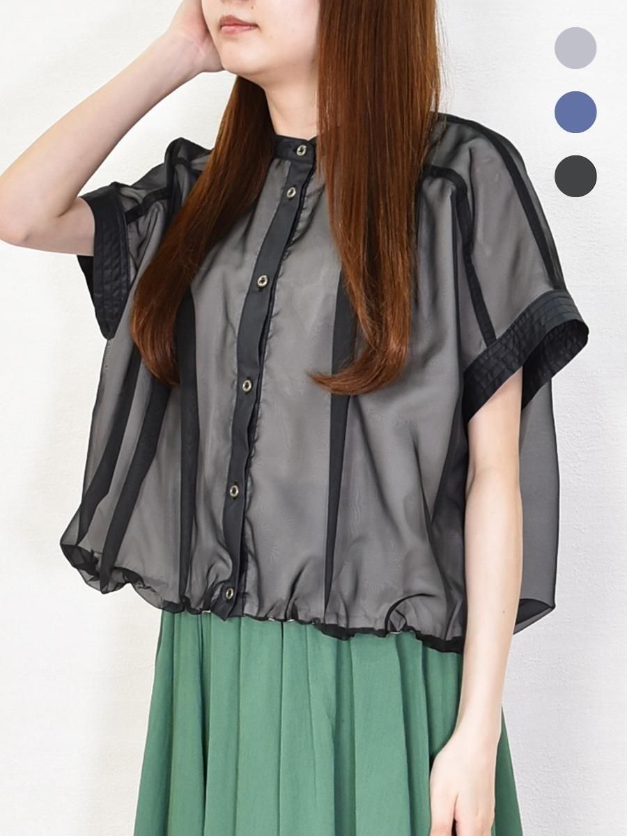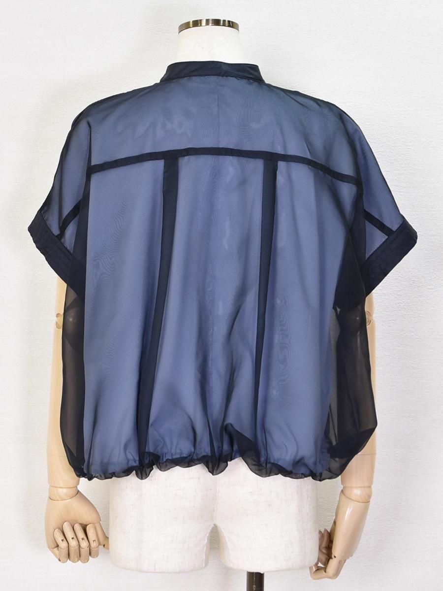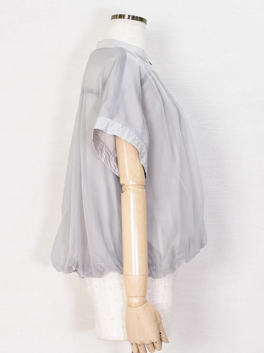 trois(トロワ)のマットオーガンジーバルーンスリーブブラウス。上品な透け感のマットオーガンジーとエアリークロスを2枚仕立てにした1枚。