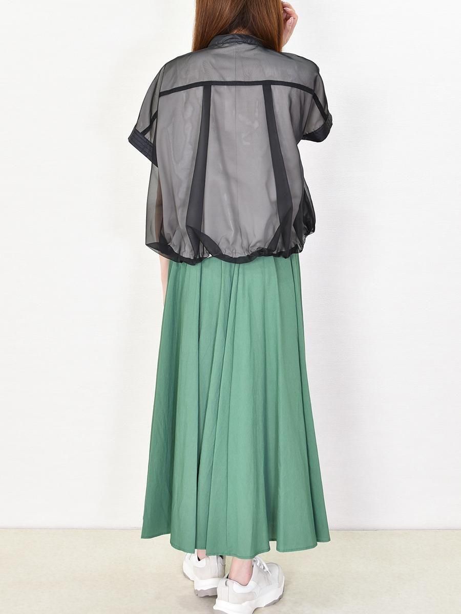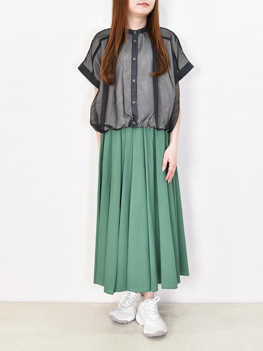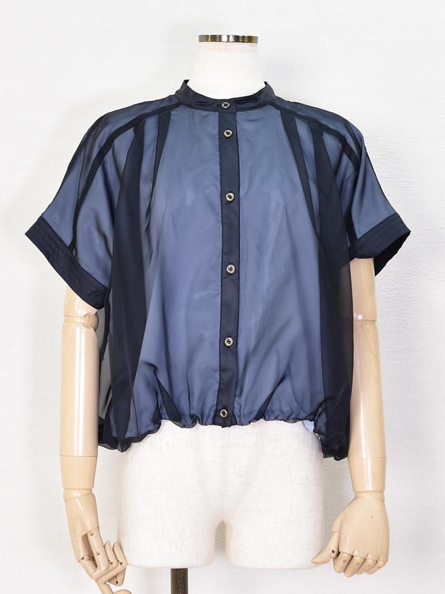 trois(トロワ)のマットオーガンジーバルーンスリーブブラウス。上品な透け感のマットオーガンジーとエアリークロスを2枚仕立てにした1枚。
