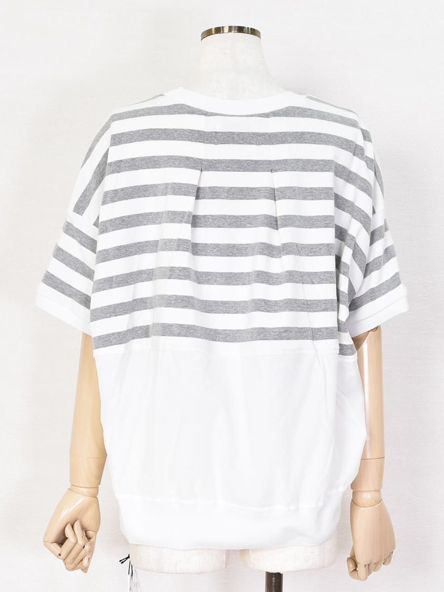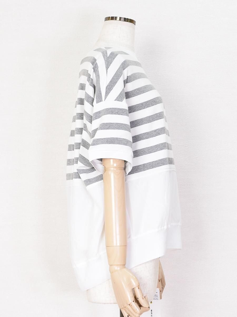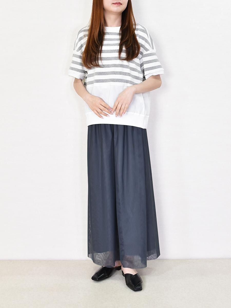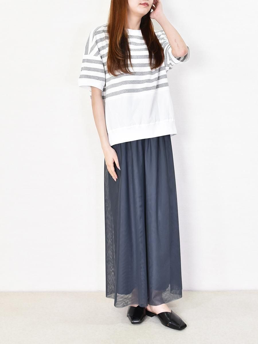 MARIED'OR(マリードール)のボーダー×チュールメッシュプルオーバー。身頃上部はカットソー、下部はチュールメッシュのドッキングデザインがポイント。