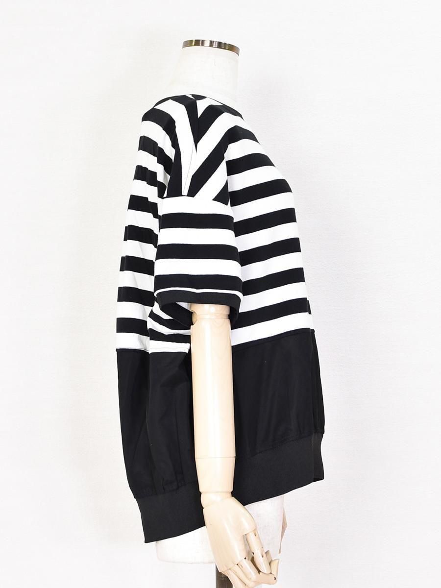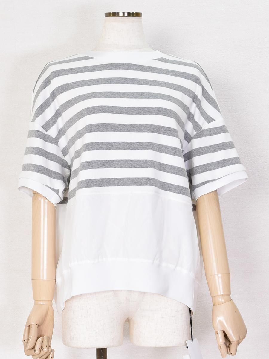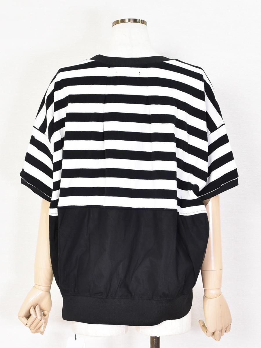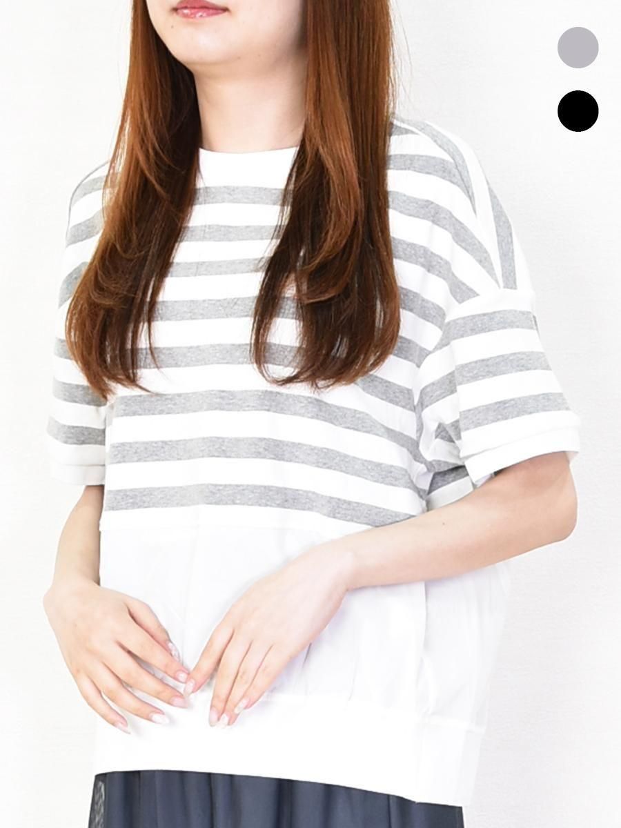 MARIED'OR(マリードール)のボーダー×チュールメッシュプルオーバー。身頃上部はカットソー、下部はチュールメッシュのドッキングデザインがポイント。