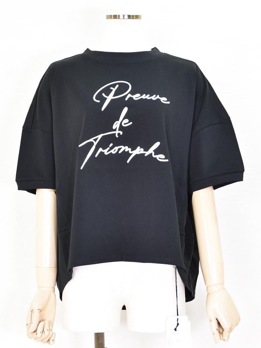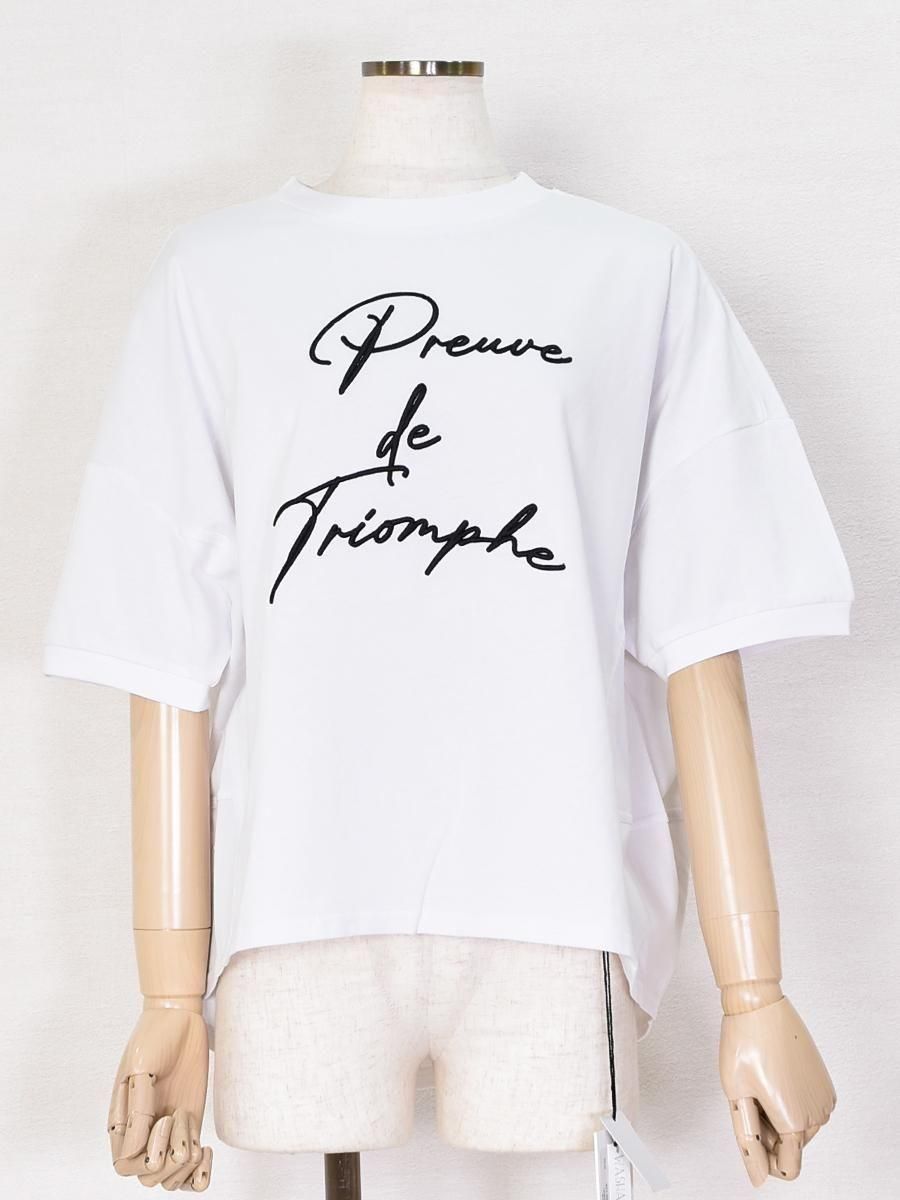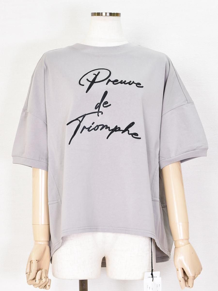 MARIED'OR(マリードール)の立体刺繡後ろ切替5分袖プルオーバー。前面にはコードを貼り付けたようなロゴがあしらわれ洗練された遊び心を演出します。