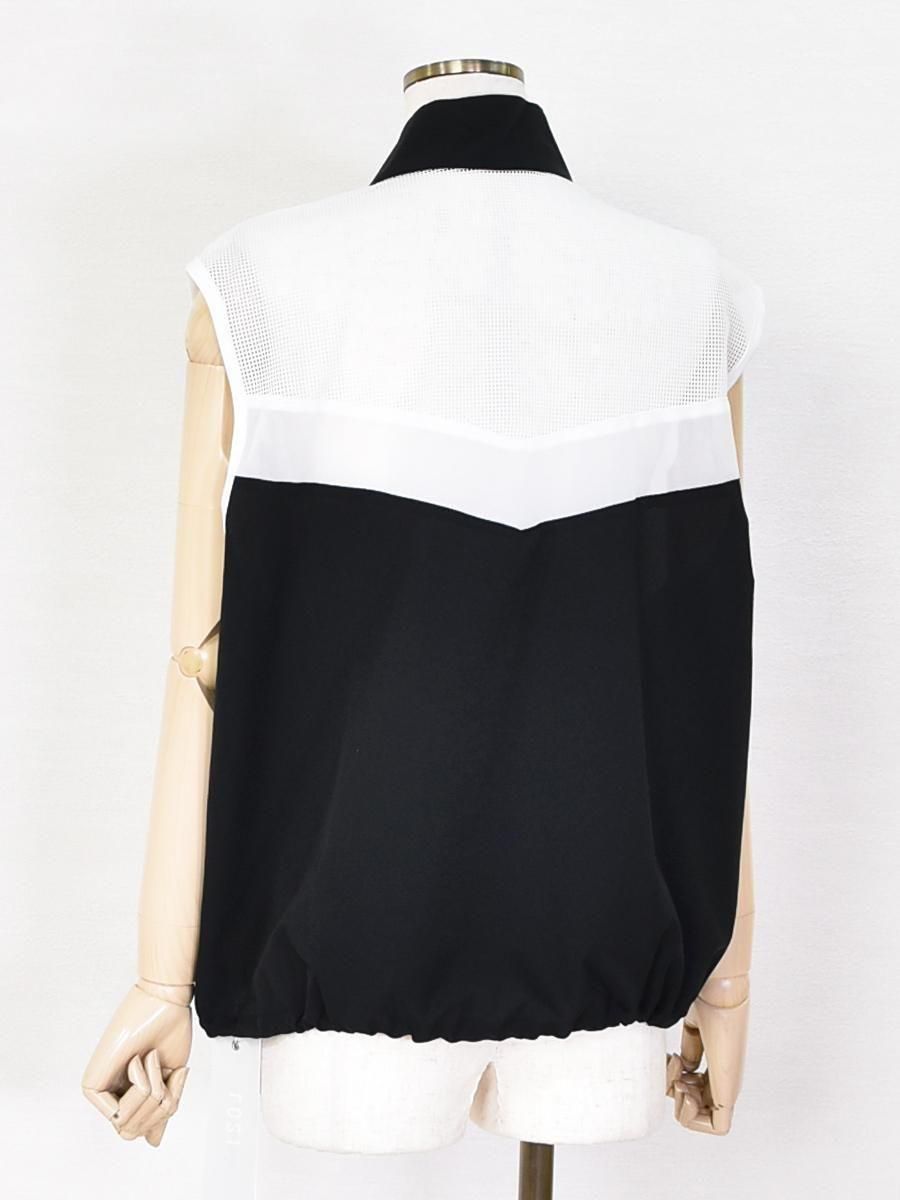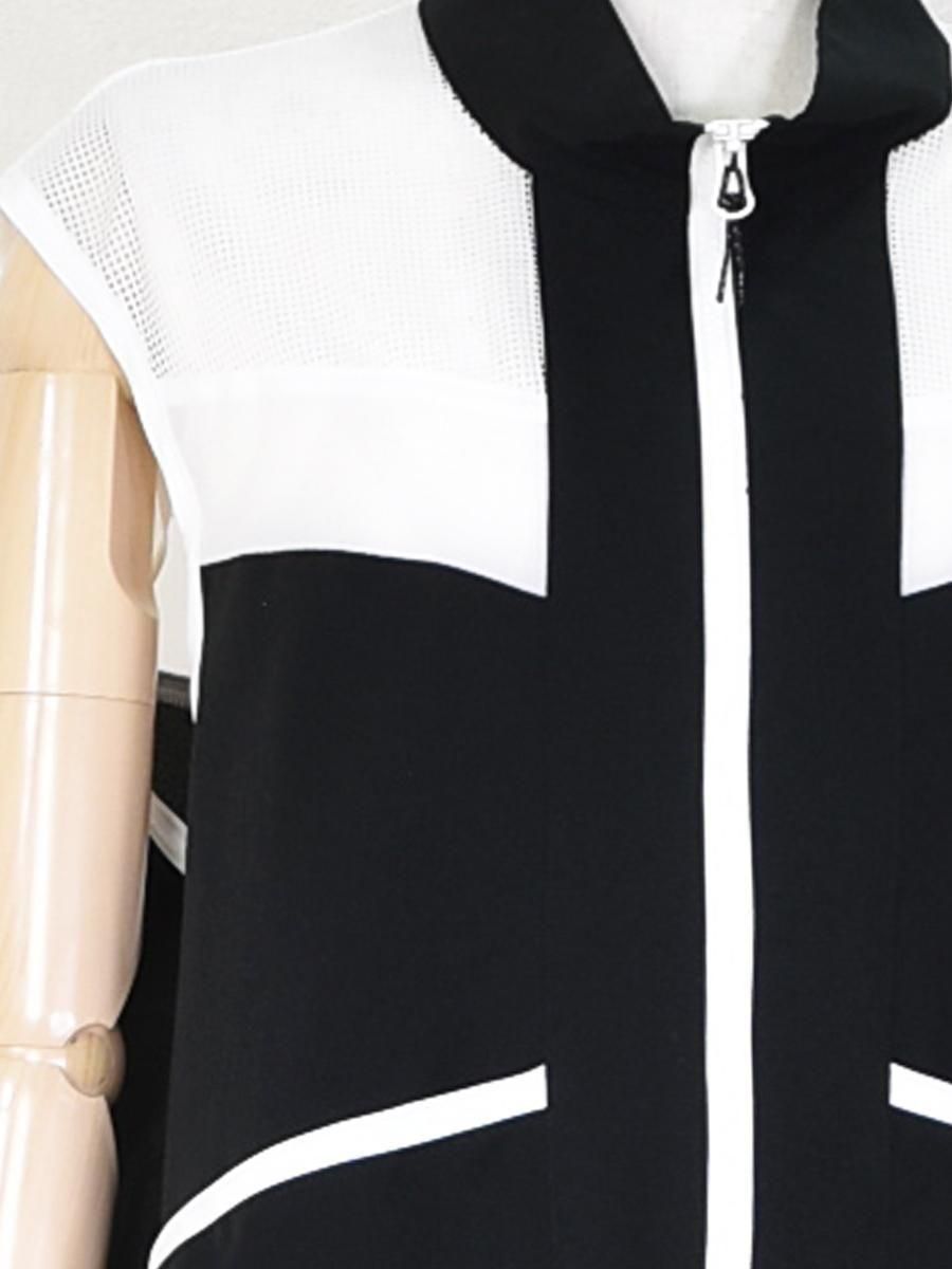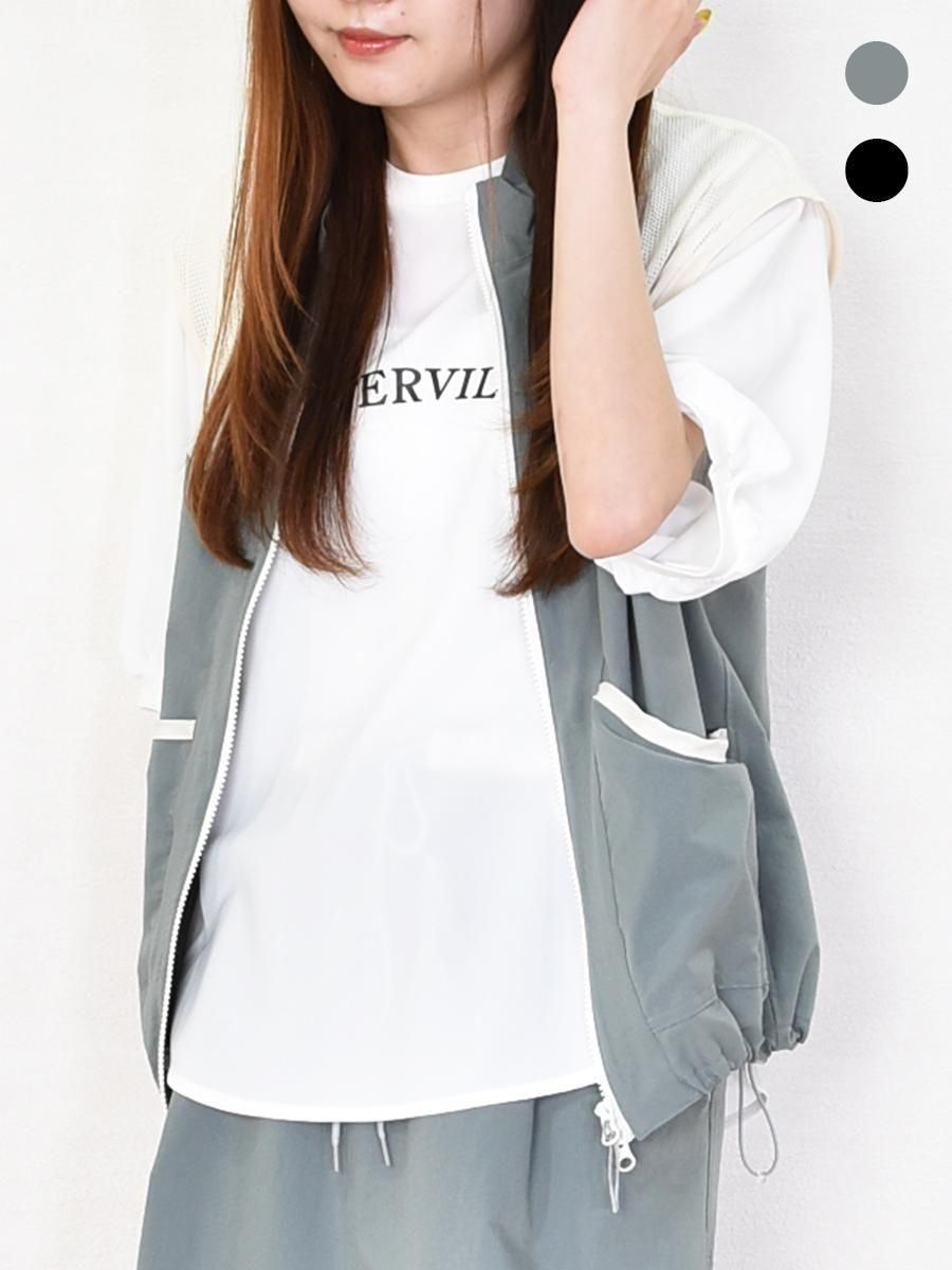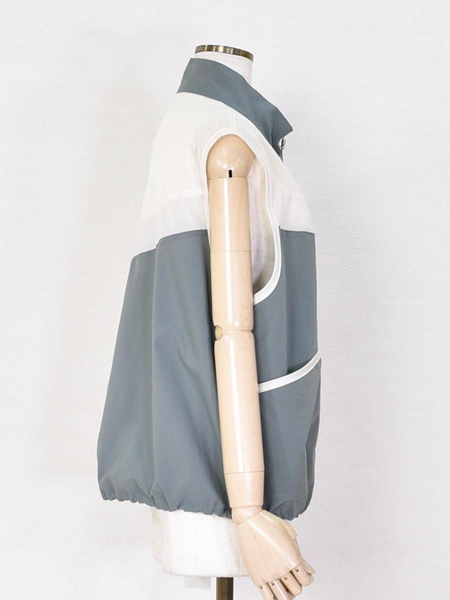 FOSI.(フォーシ)のバイカラーZIPベスト。軽やかなナイロン素材に肩からヨークにかけて透け感のあるメッシュを切り替えたアクティブな印象のジップベスト。
