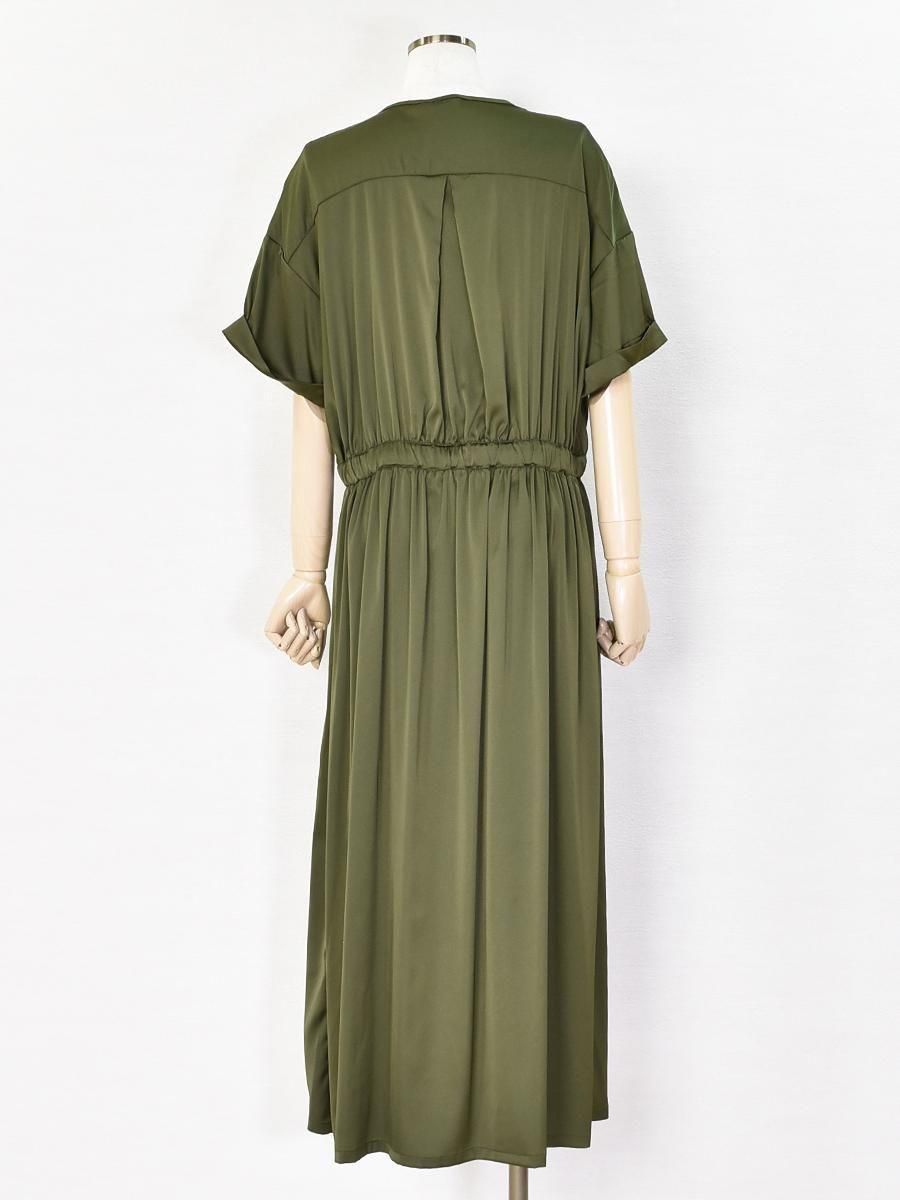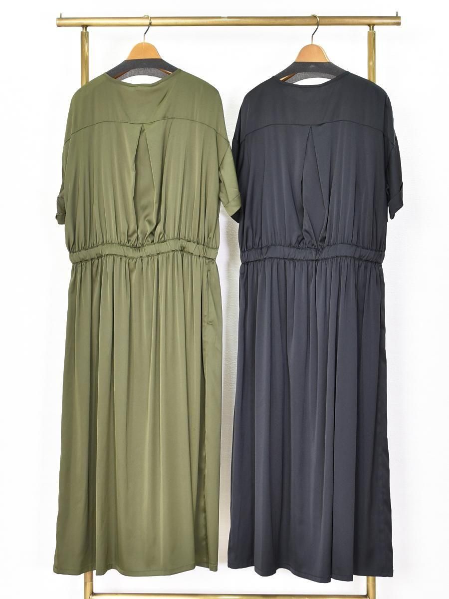 trois(トロワ)のサテンデザインワンピース。さらりとした肌触りのサテン生地のワンピースです。