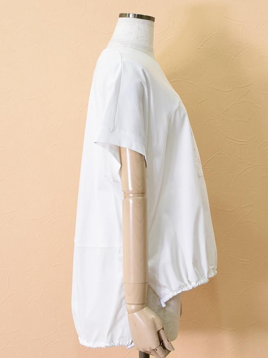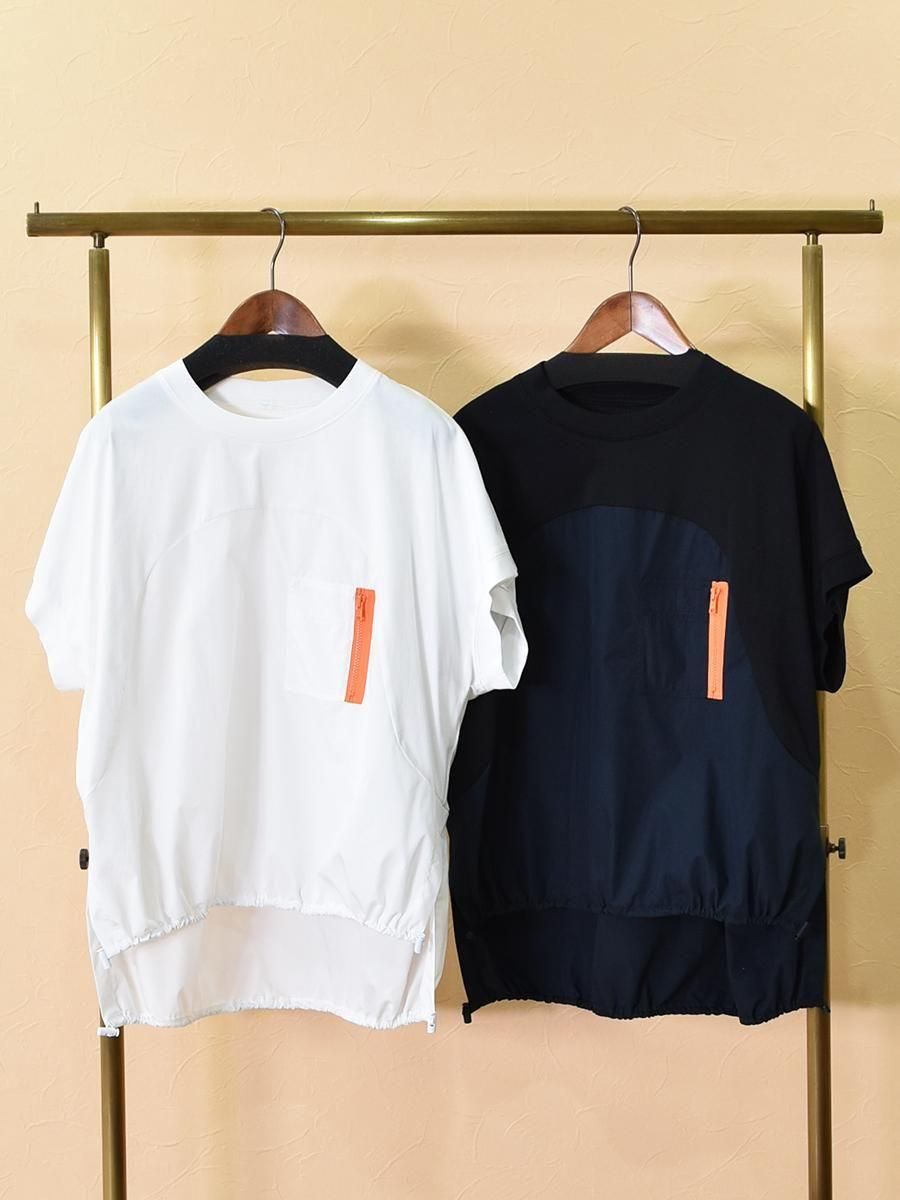 vivapresto(ヴィヴァプレスト)のジップポケット付きドロストプルオーバー。スポーティなエッセンスが新鮮な、軽やかな素材の1枚。