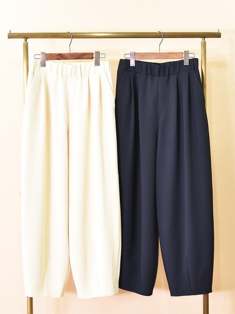 BLUE FRONCE(ブルーフロンセ)のタックテーパードパンツ。ウエストゴム仕様で快適な穿き心地と美しいシルエットを両立したパンツ。