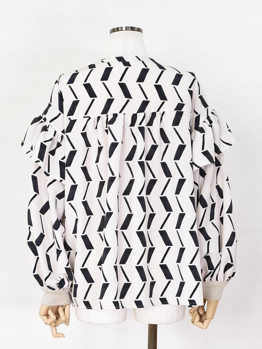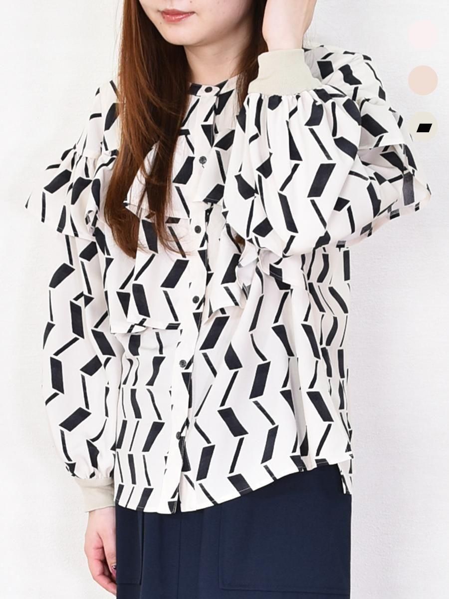 フリルが華やかな印象で、上品な雰囲気のブラウスです。