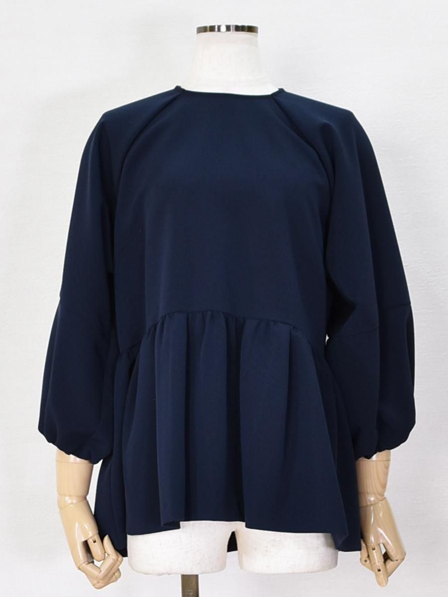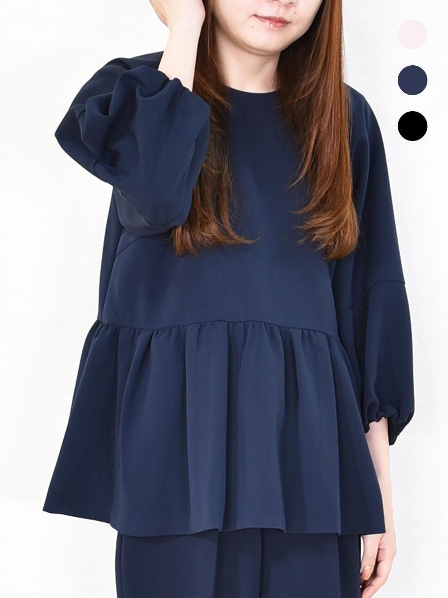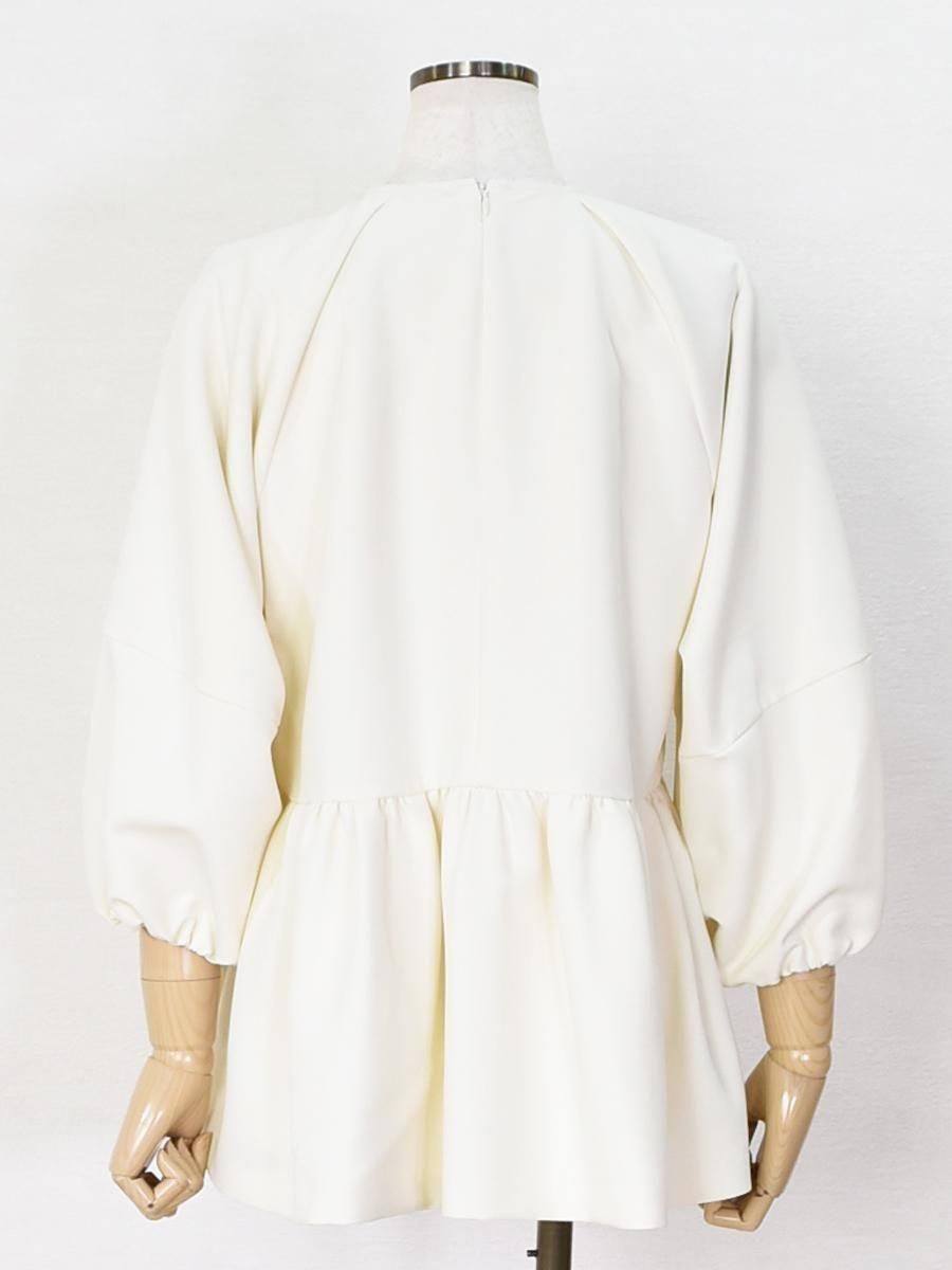 PASSIONE(パシオーネ)のボリュームスリーブ切替プルオーバー。ペプラムデザインで華やかな印象の1枚。