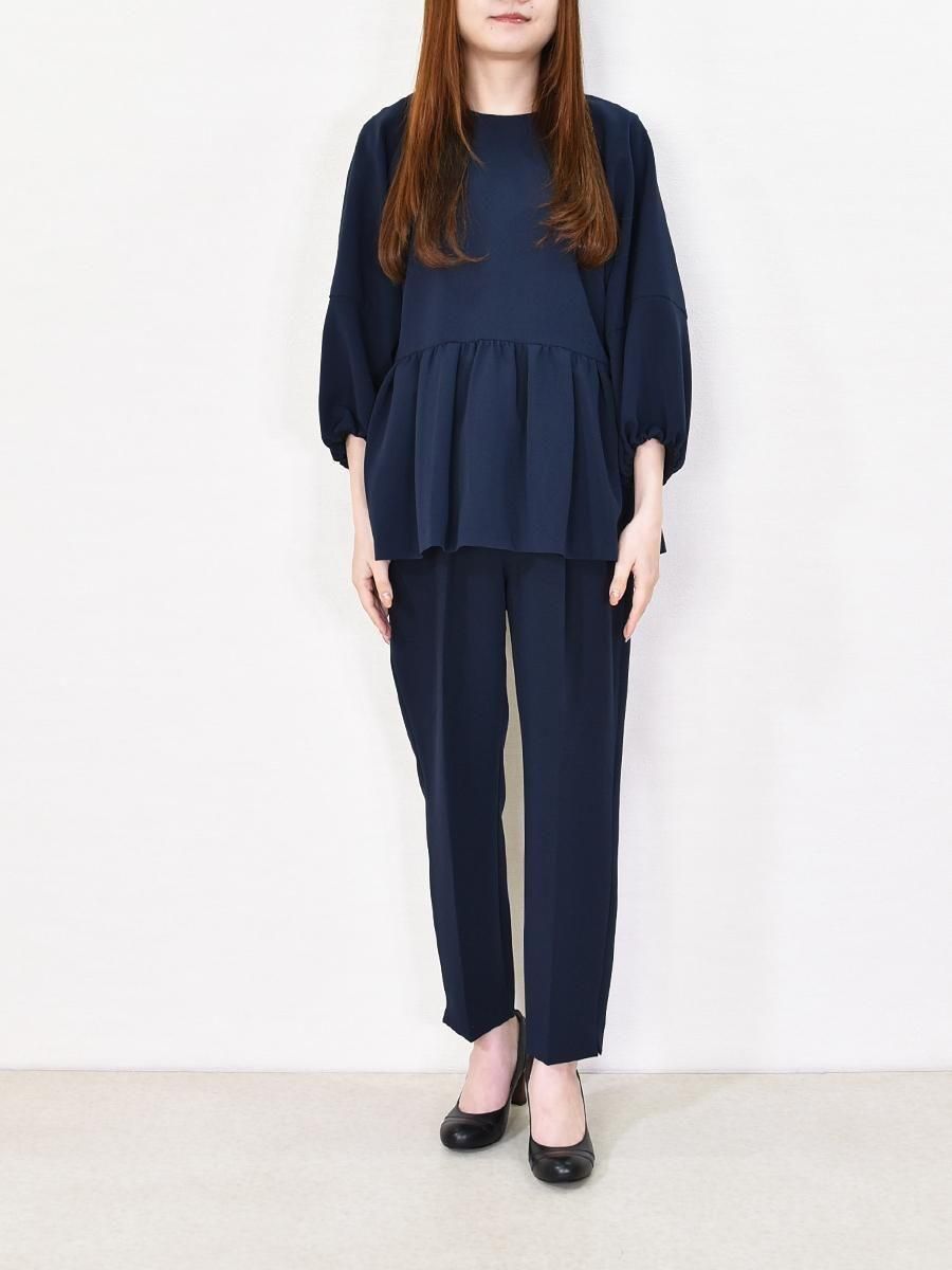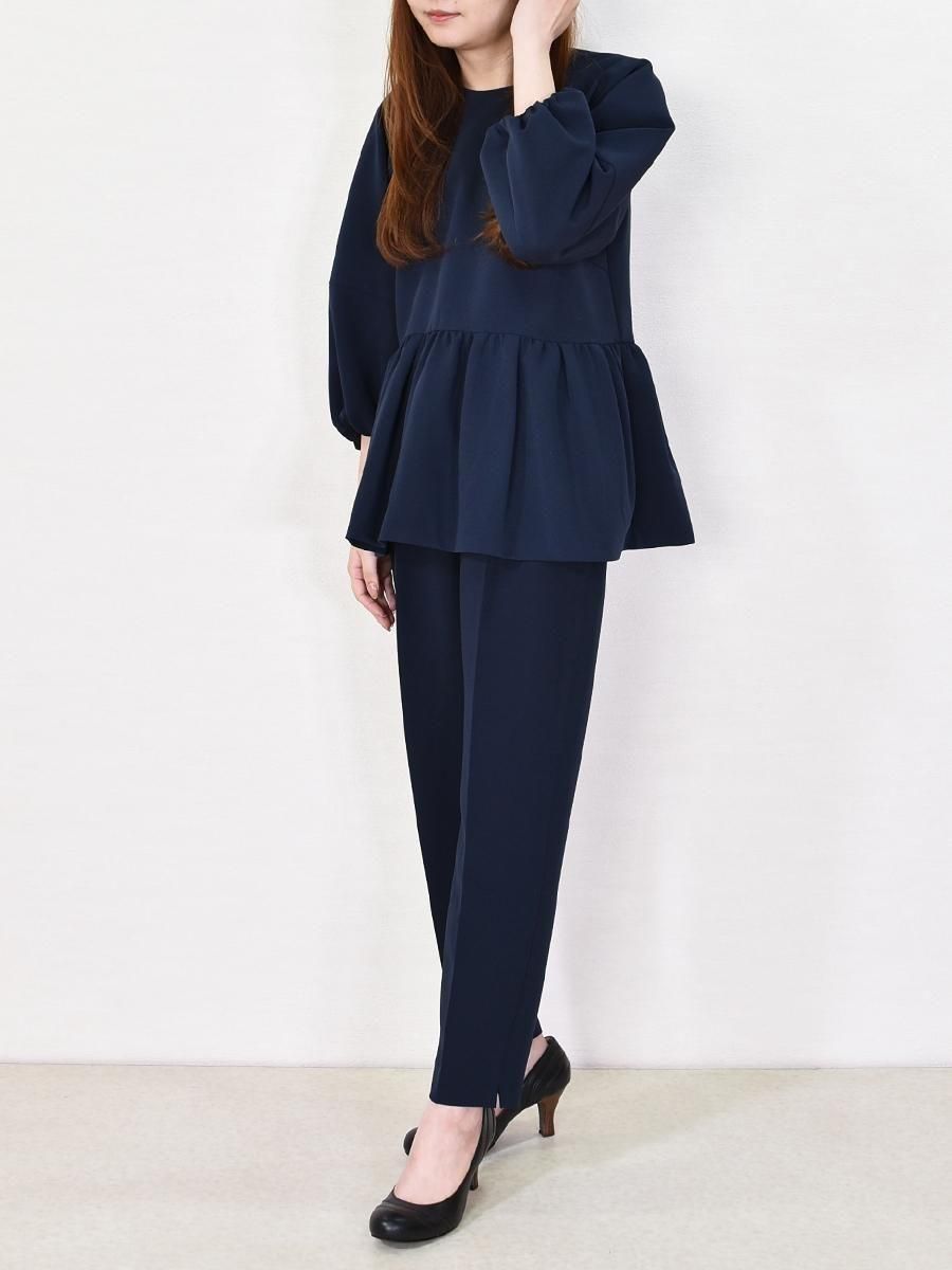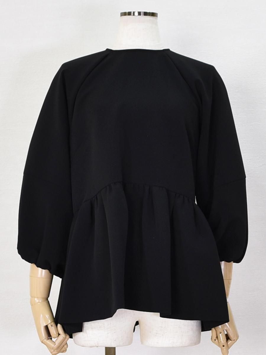 PASSIONE(パシオーネ)のボリュームスリーブ切替プルオーバー。ペプラムデザインで華やかな印象の1枚。