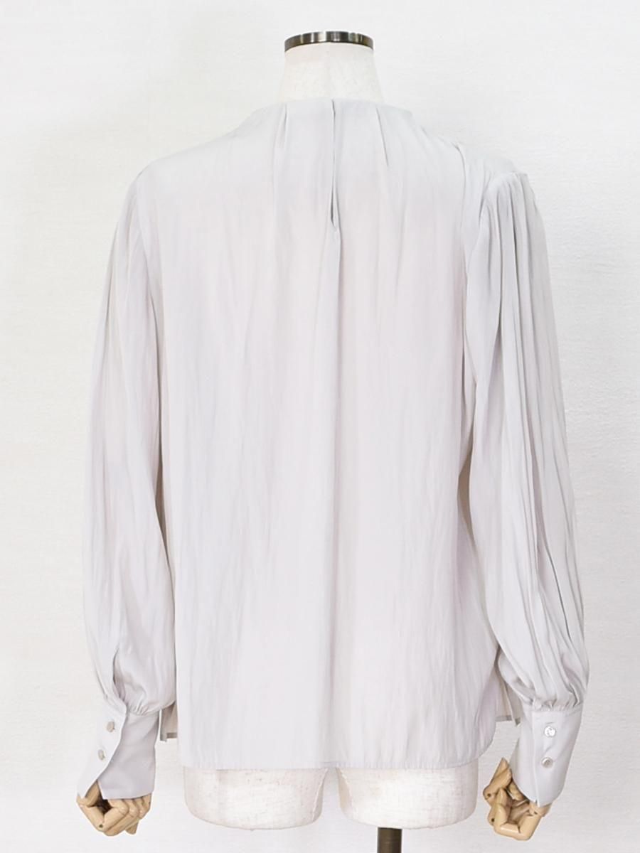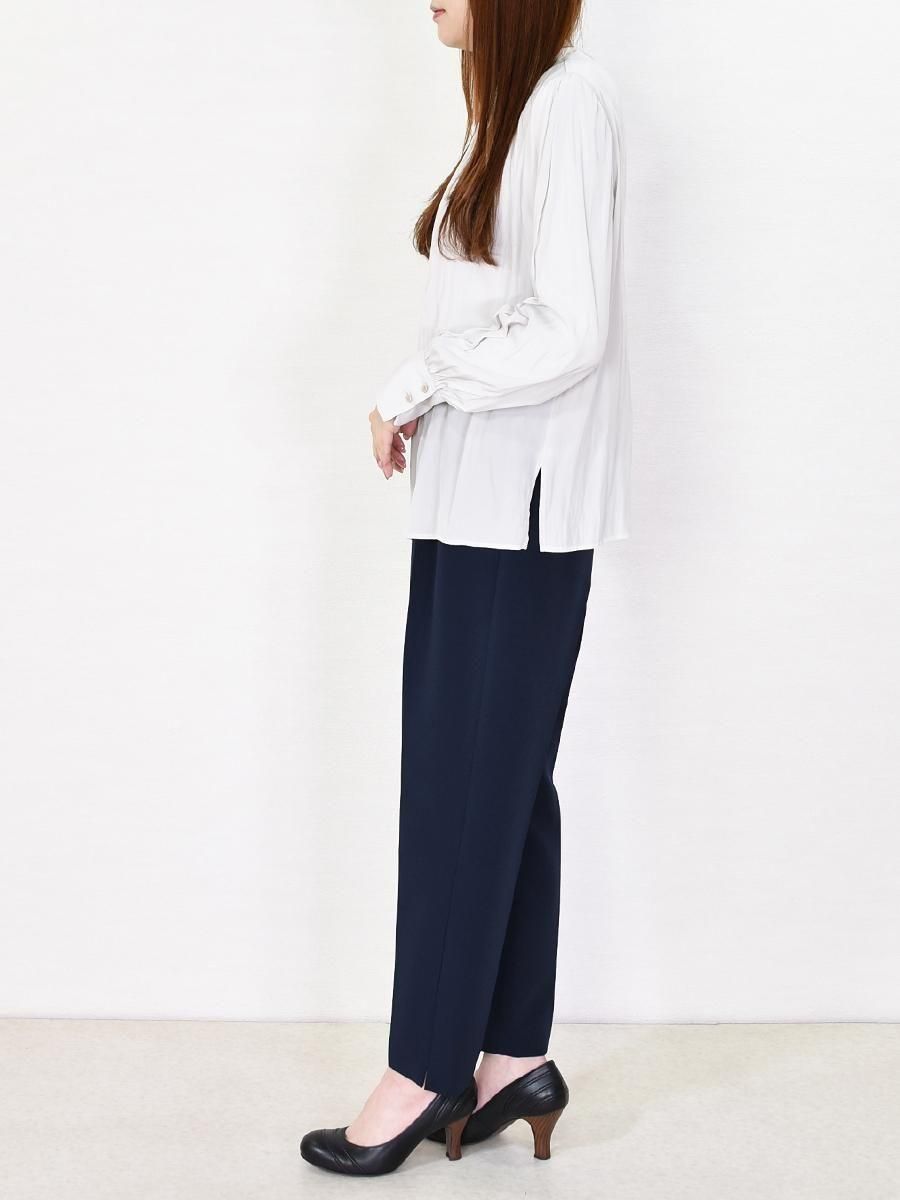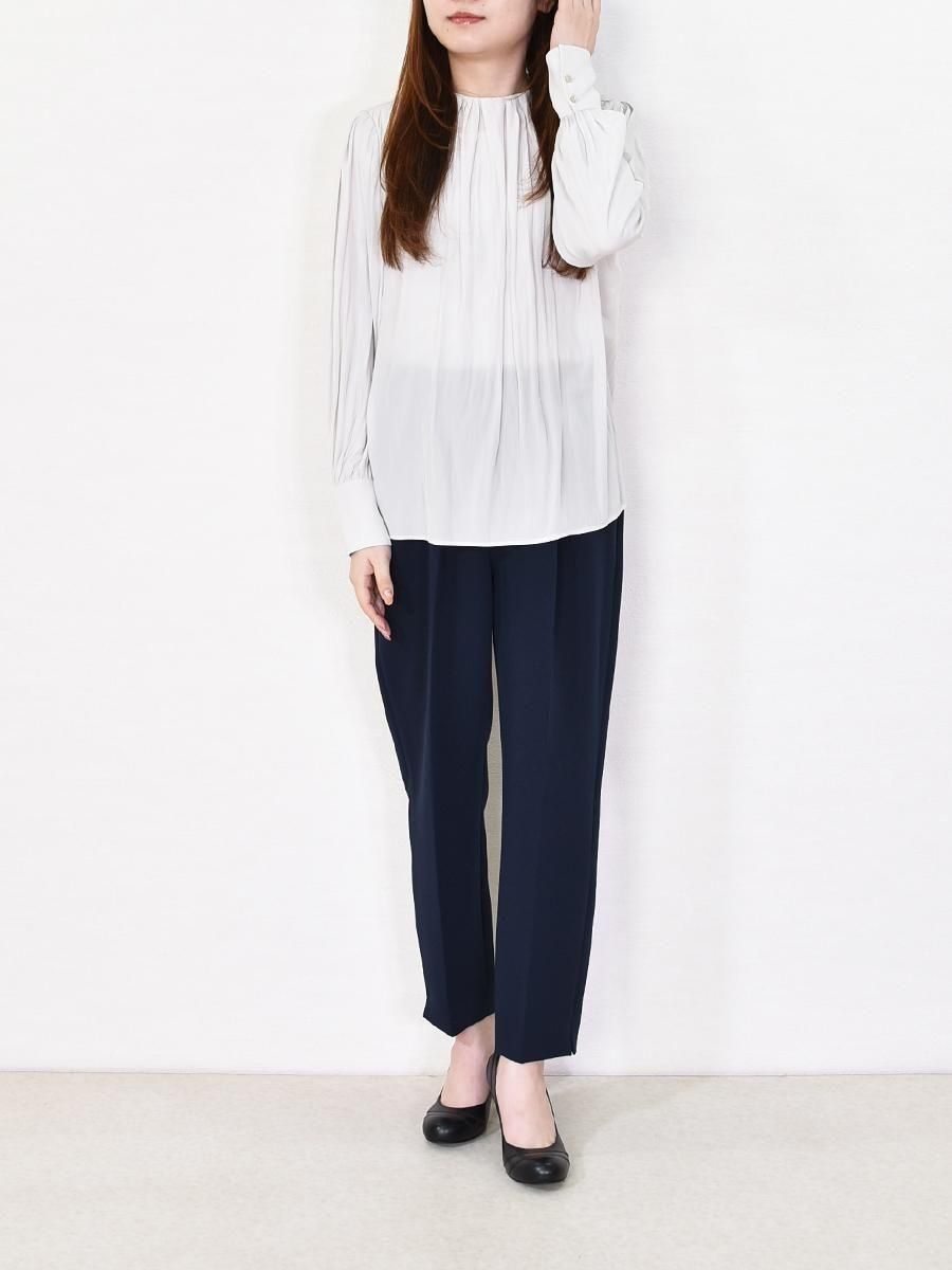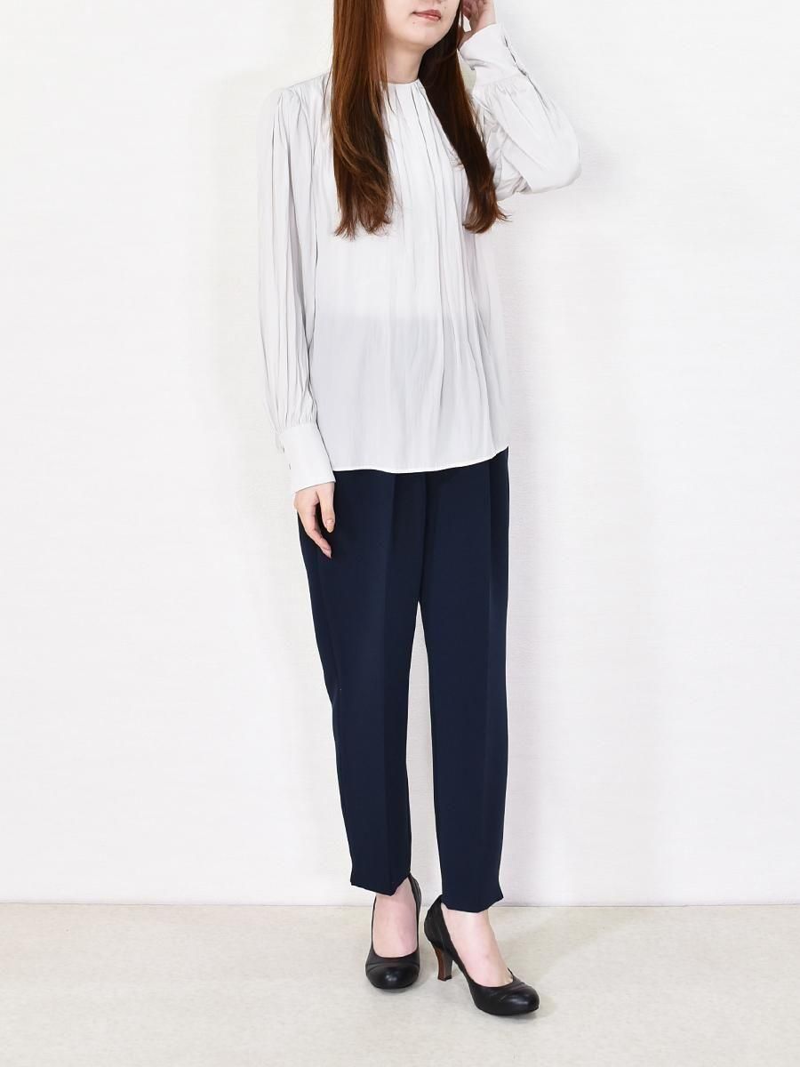 PASSIONE(パシオーネ)のタックドットノーカラーブラウス。首元のタックデザインがポイントのブラウス。