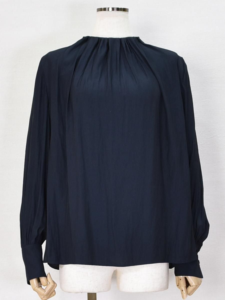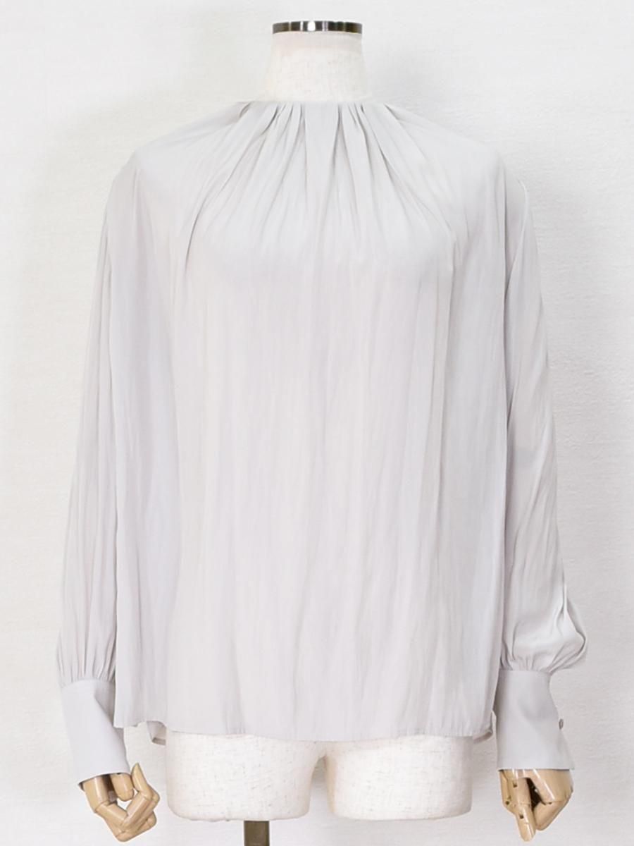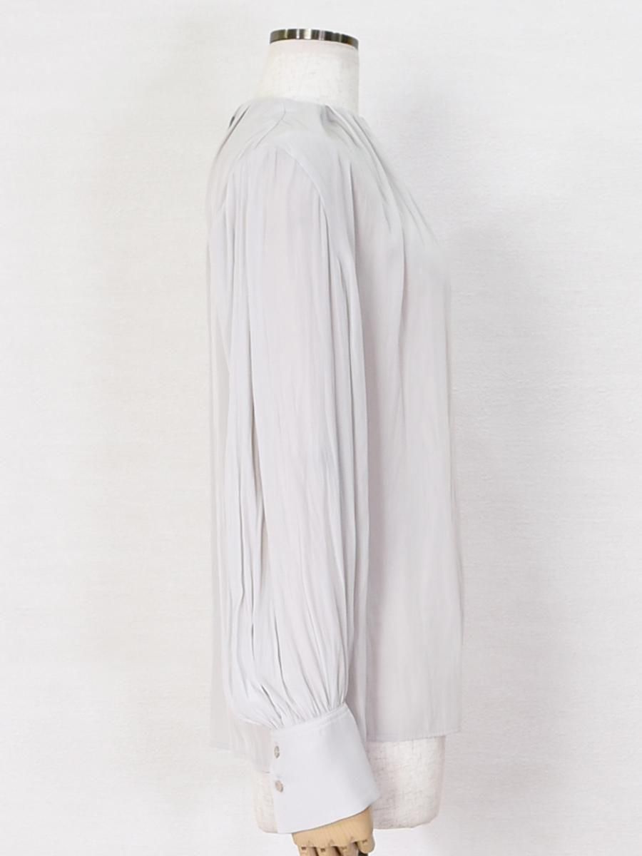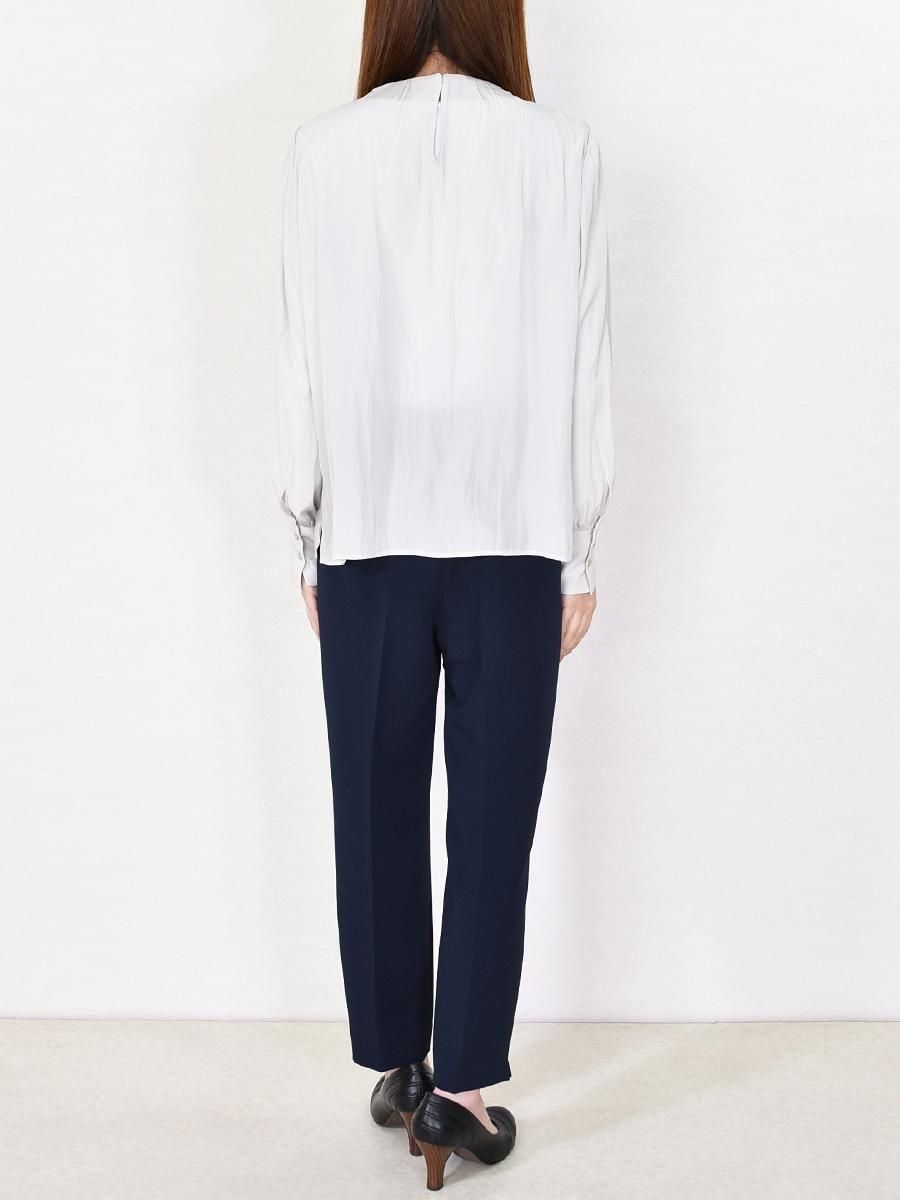 PASSIONE(パシオーネ)のタックドットノーカラーブラウス。首元のタックデザインがポイントのブラウス。