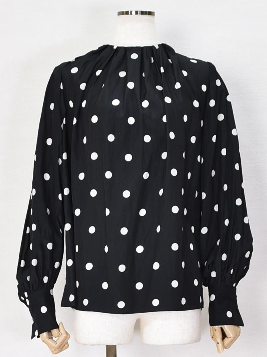 [30%OFF] PASSIONE (パシオーネ) タックドット ノーカラーブラウス