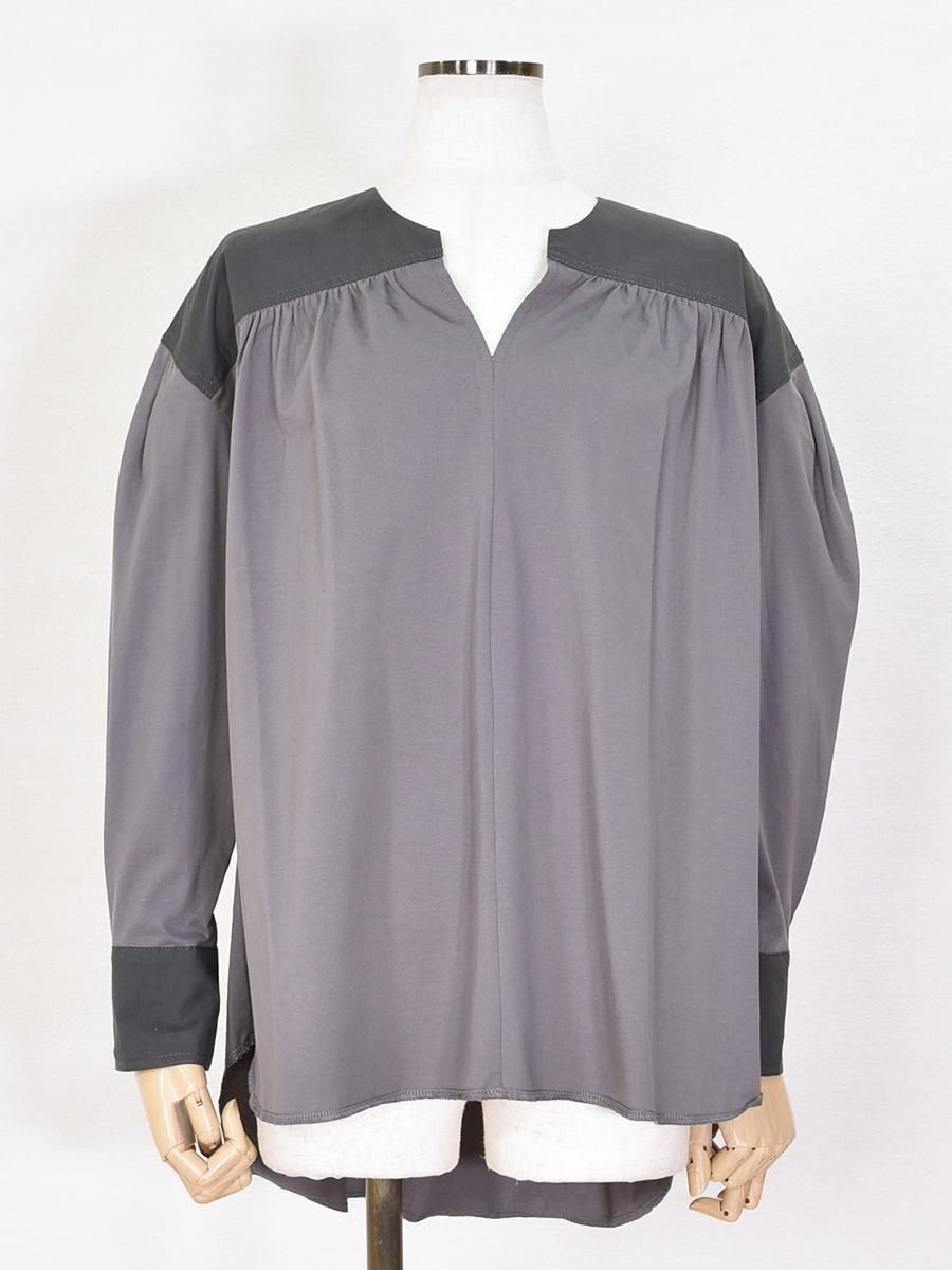ANGELINA(アンジェリーナ)のバイカラースキッパープルオーバー。カジュアルなカットソーに布帛生地を組み合わせた1枚。