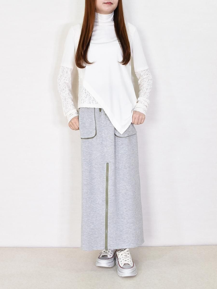 [30%OFF] MICALLE MICALLE (ミカーレミカーレ) ハイネック袖 レース切替 アシメプルオーバー