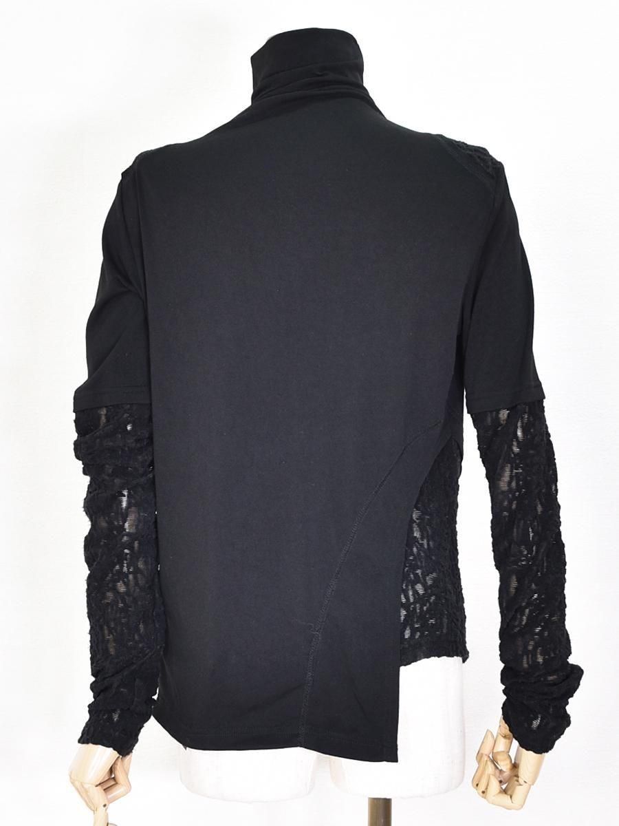 MICALLE MICALLE(ミカーレミカーレ)のハイネック袖レース切替アシメプルオーバー。アシンメトリーなカットデザインがモードな雰囲気の1枚。