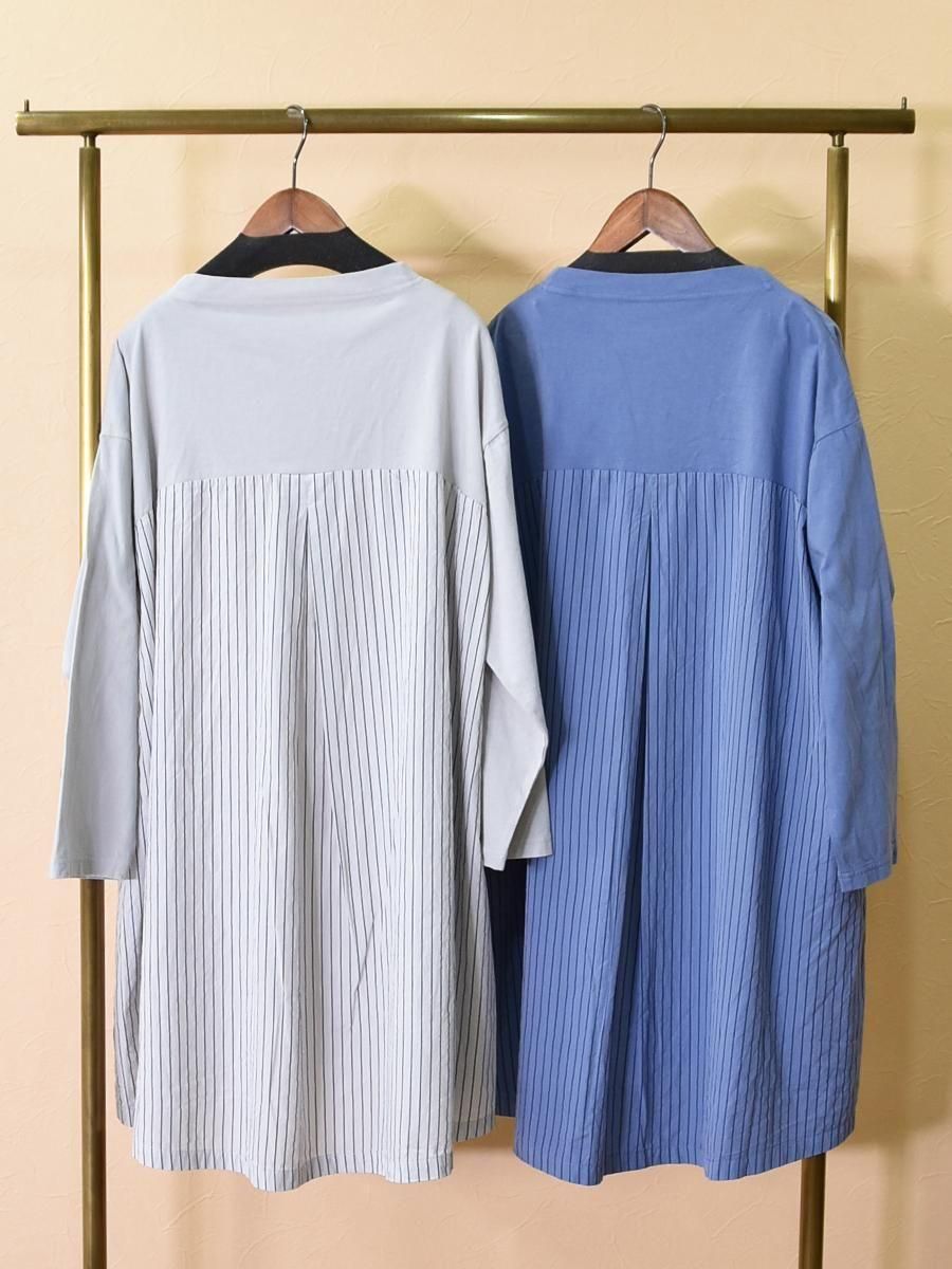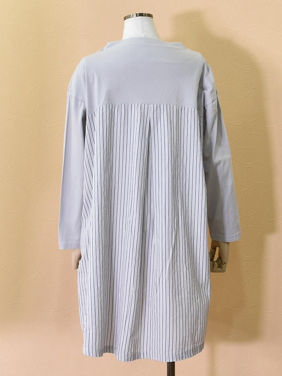 pas a pas(パスアパス)のムジ×ストライププルオーバー。。フロントはシンプルながら、バックにはストライプデザインを施しバックスタイルもオシャレ。