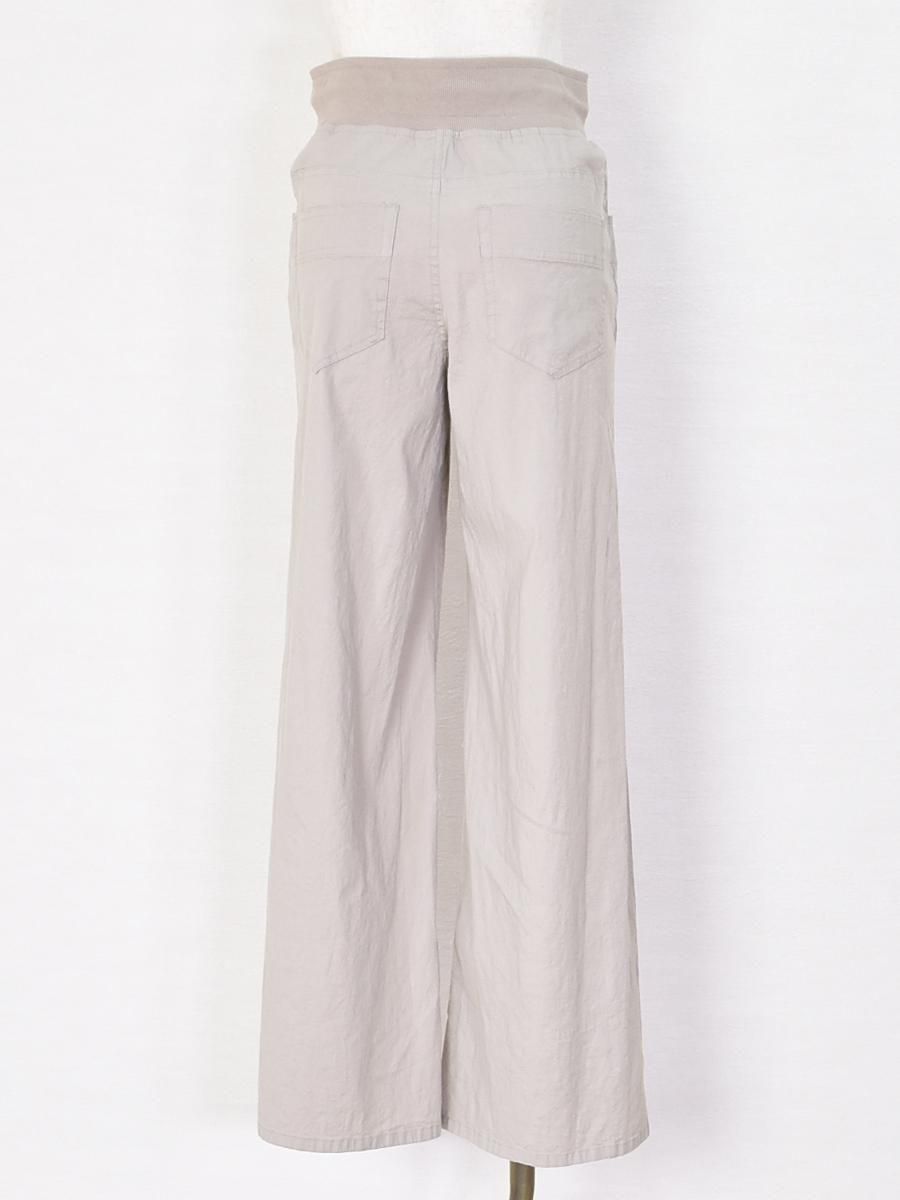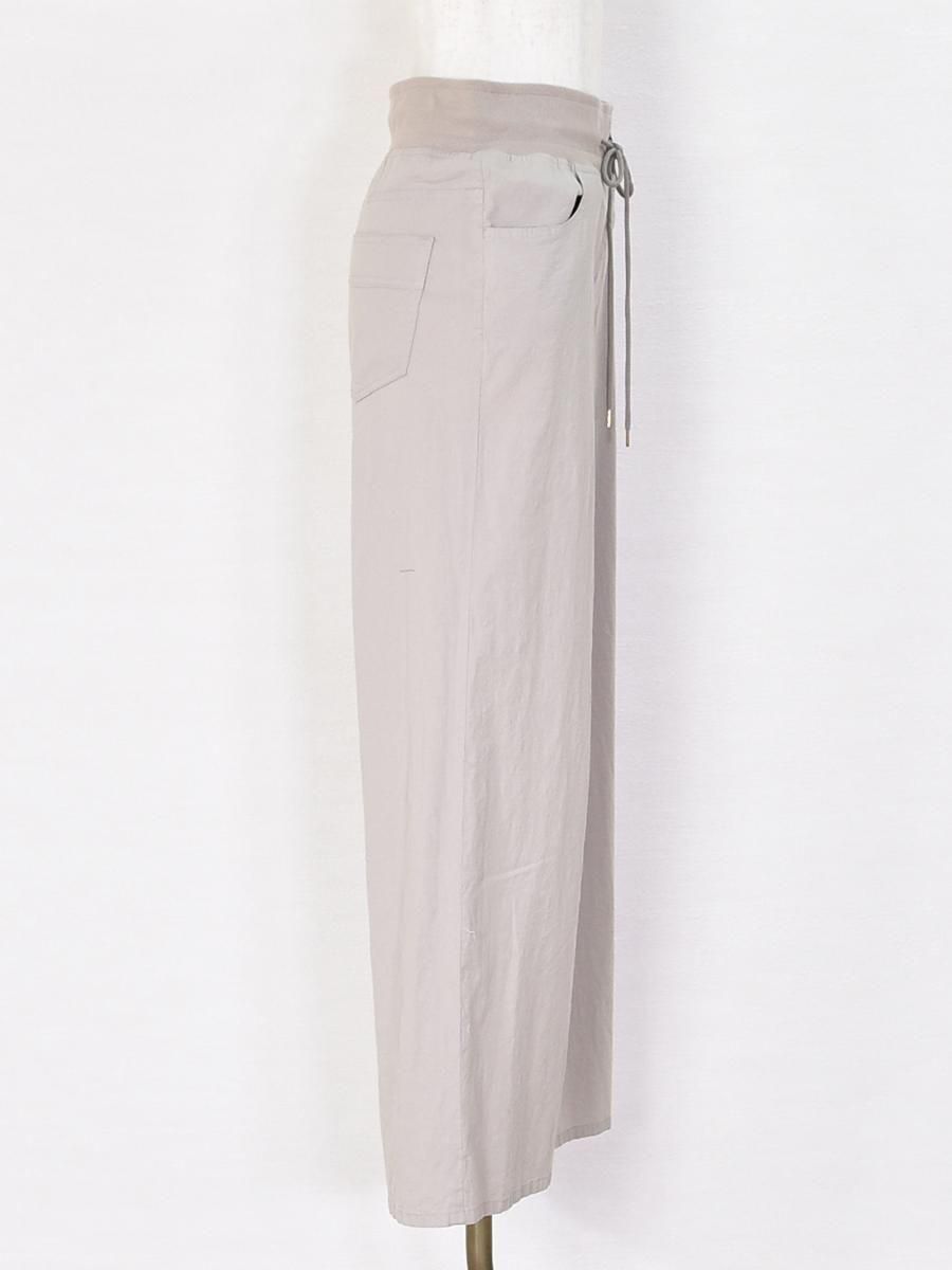 PASSIONE(パシオーネ)のウエストゴムセミワイドパンツ。リブ仕様のウエストが腰回りに優しくフィットし、ストレスフリーな穿き心地。