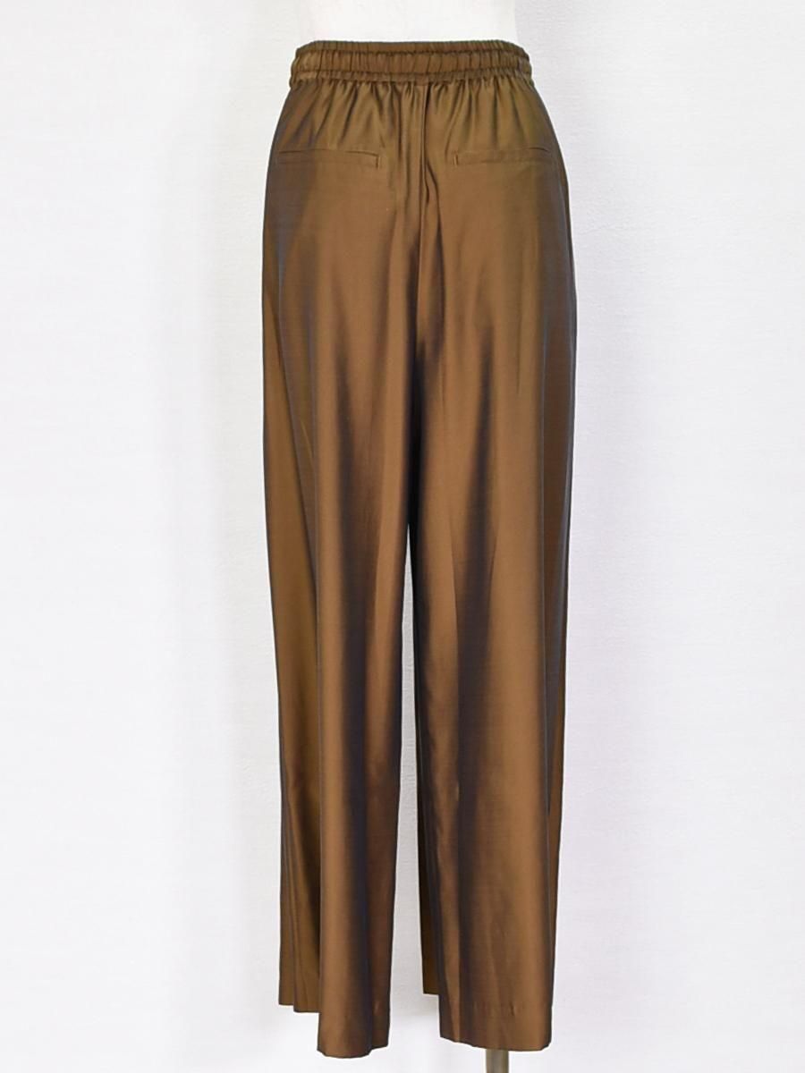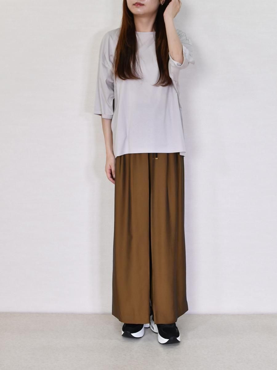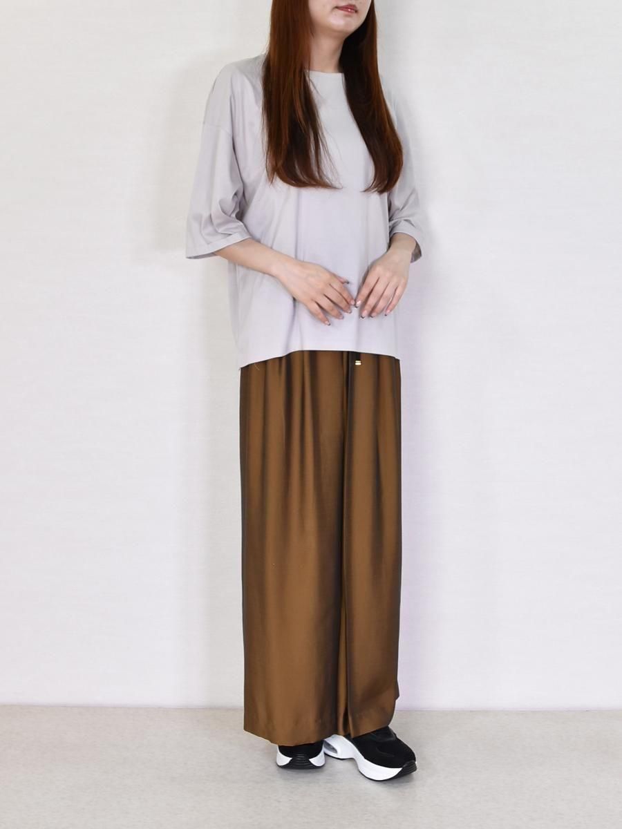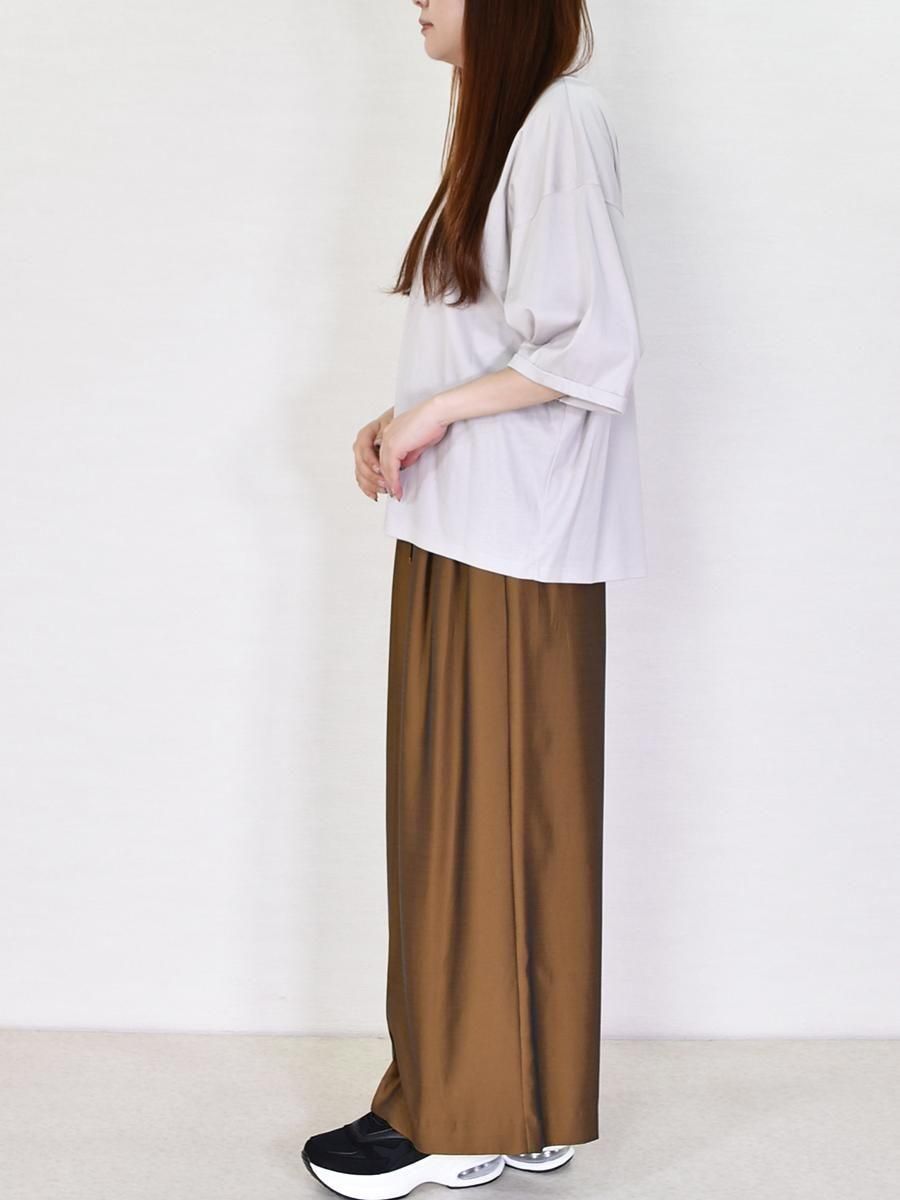 PASSIONE(パシオーネ)のタックワイドパンツ。落ち感のあるとろみ素材で動くたびに美しいシルエットを演出。