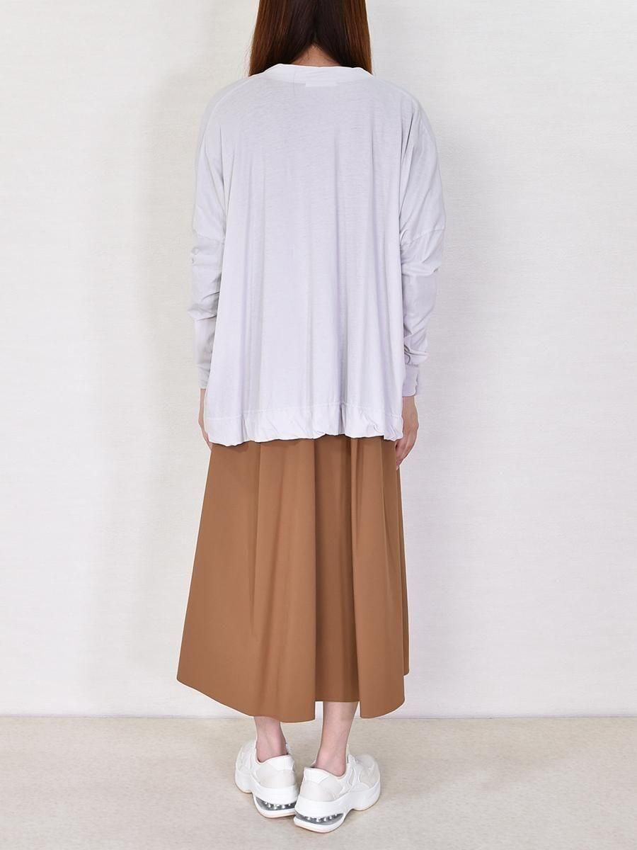 裾にさりげないギャザーを寄せ、動きのあるシルエットに仕上げました。
