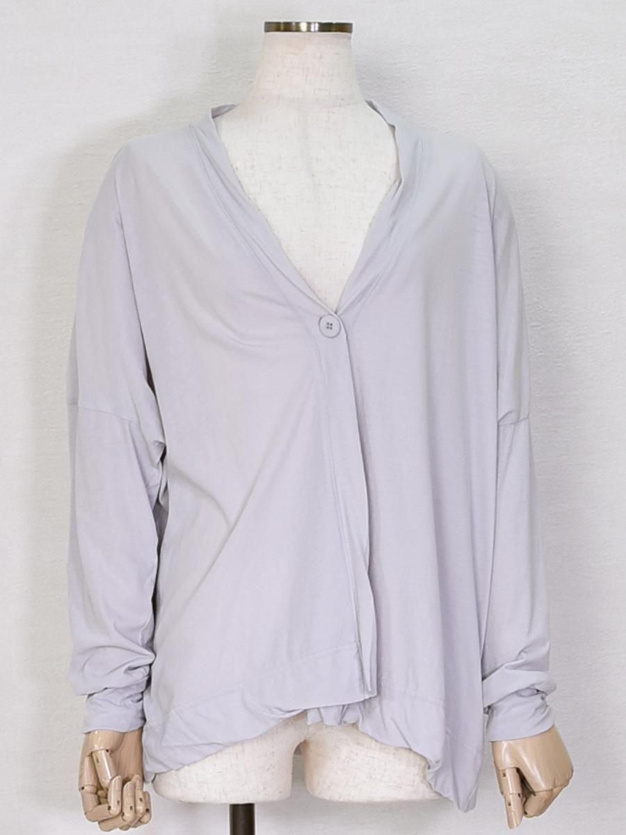 PASSIONE(パシオーネ)のVネック1つボタンカーディガン。やわらかな落ち感が美しい、大人のためのリラックスアイテムです。