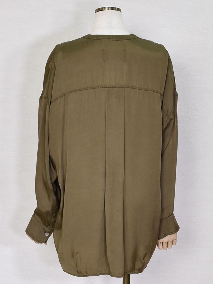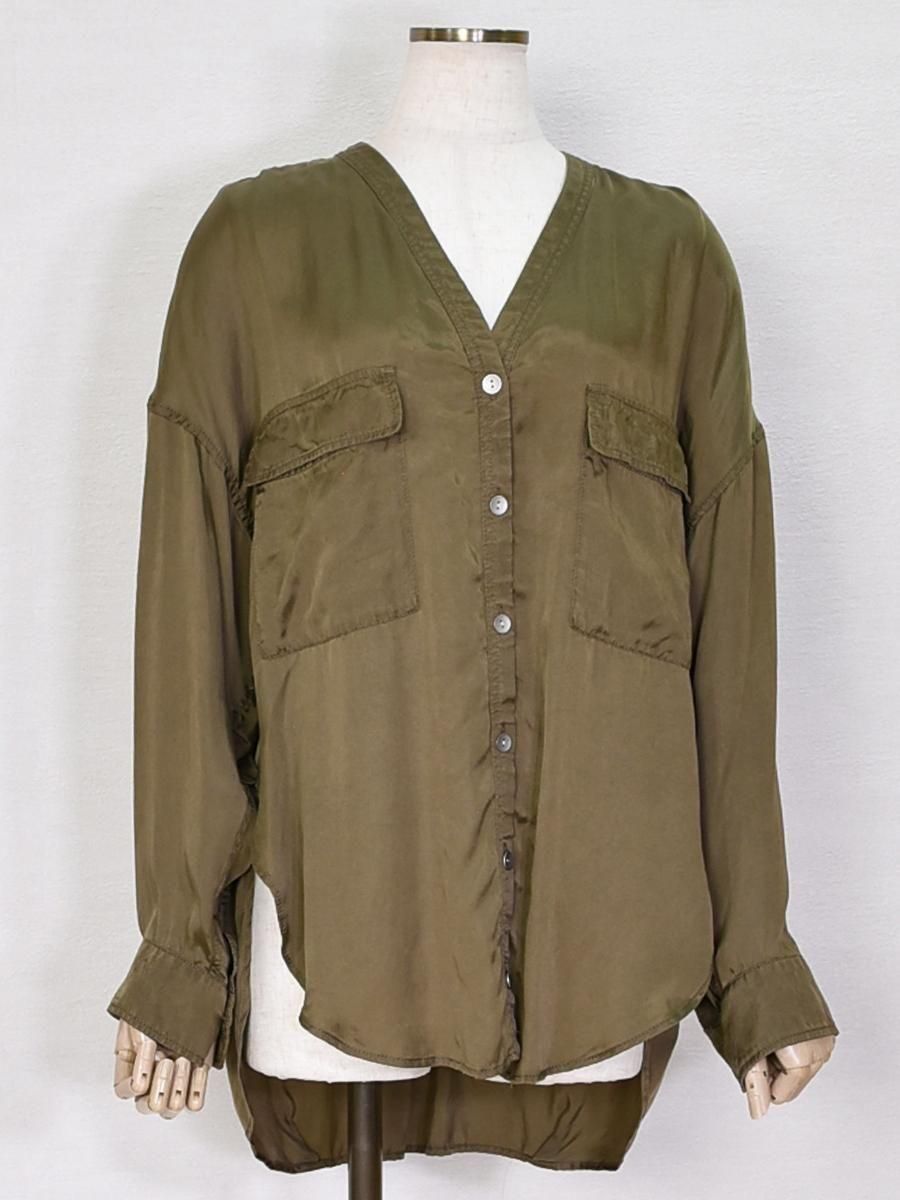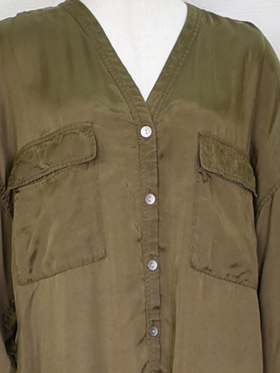PASSIONE(パシオーネ)のVネックキュプラポケット付きブルゾン。胸元のポケットと深めのVネックがカジュアルさを引き立てる1枚。