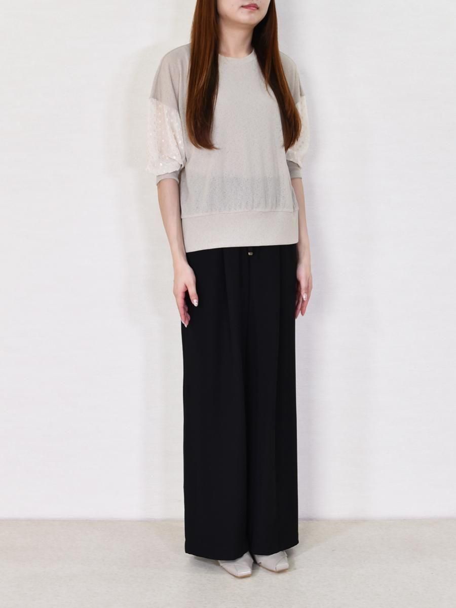 trois(トロワ)のダブルクロスワイドイージーパンツ。大人気で定番のダブルクロス使用のワイドイージーパンツです。