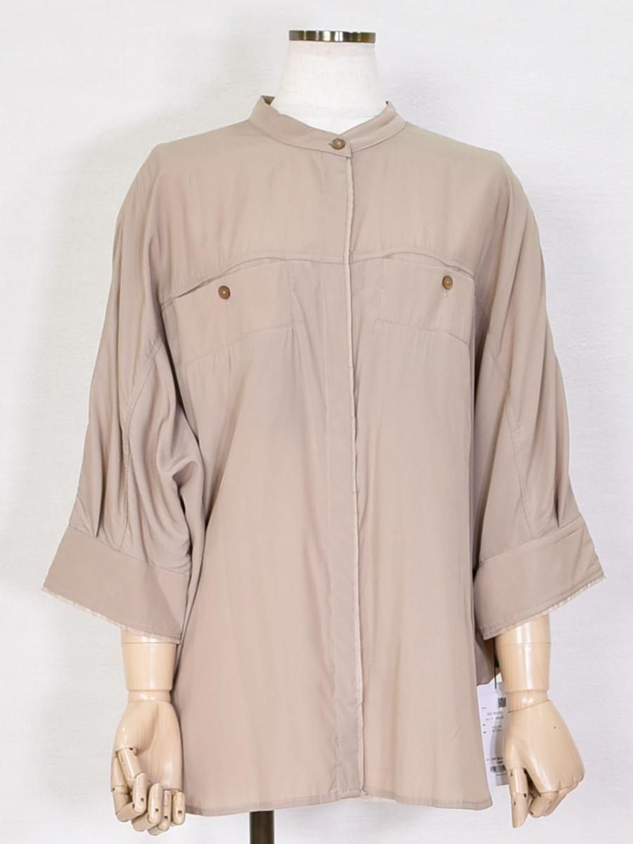 CYNICAL(シニカル)のバンドカラードルマンスリーブブラウス。バンドカラーと比翼仕立てが、すっきりとした大人の印象を演出。