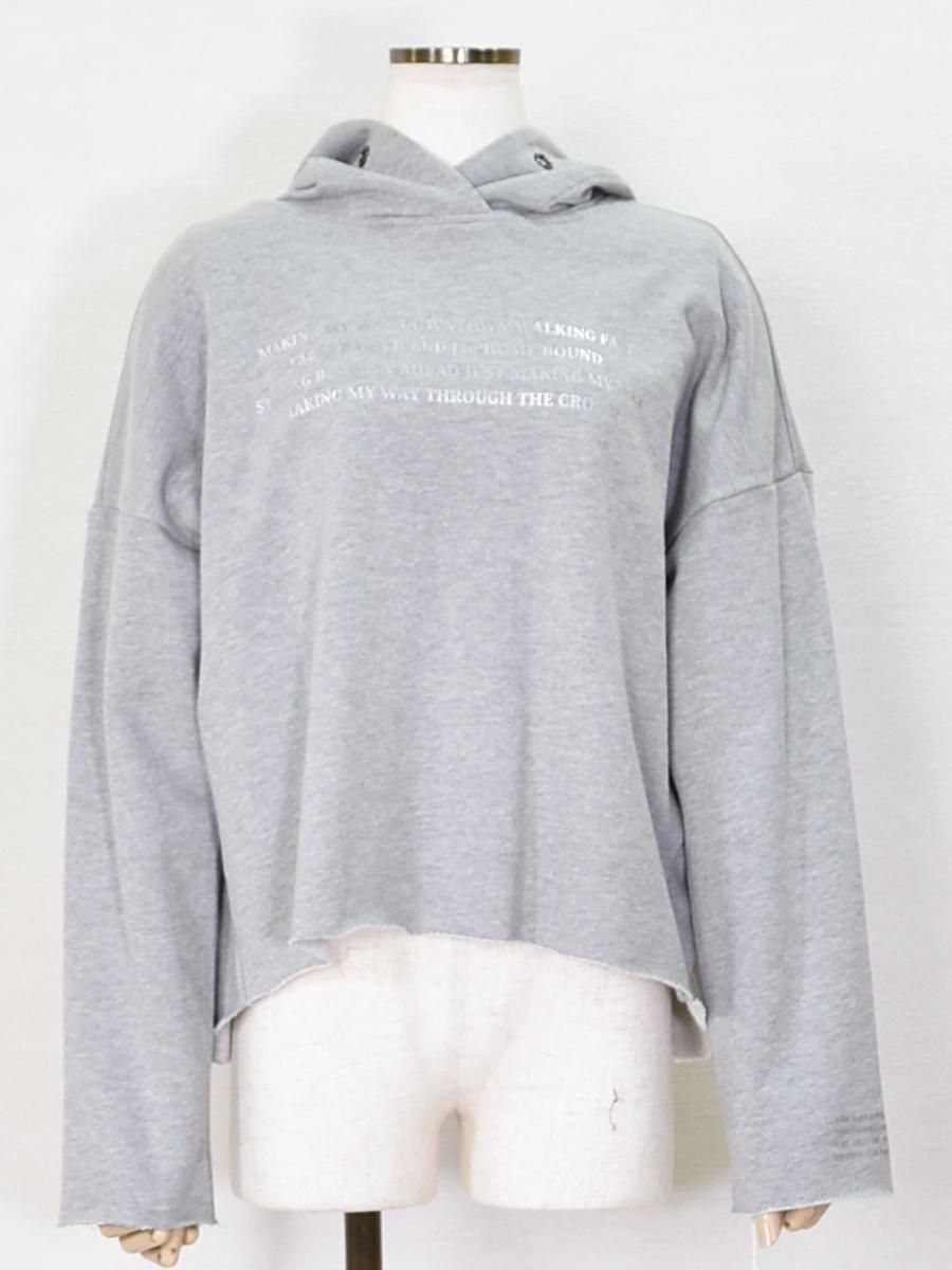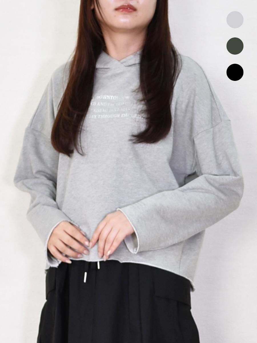 ayane(アヤン)の裏毛ロゴパーカー。裏毛といっても多種多様な素材がある中で、軽量の裏毛を使用しています。