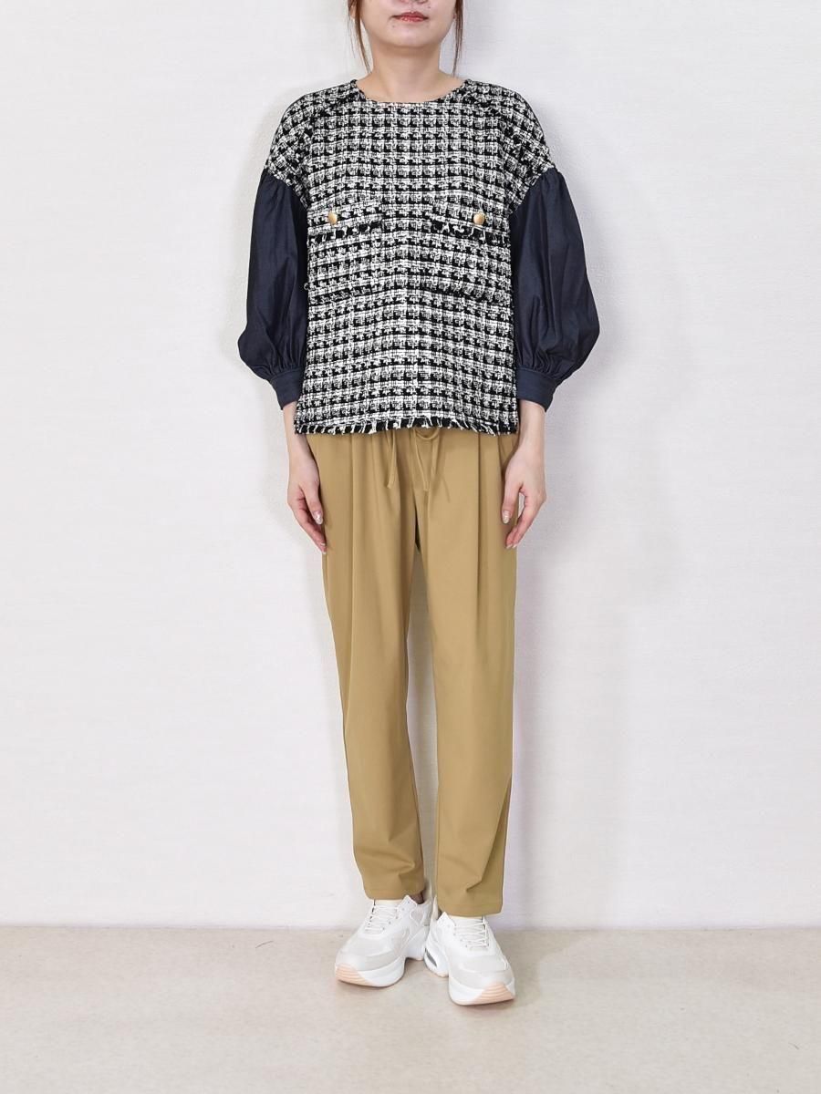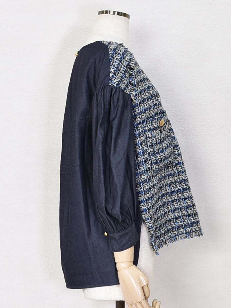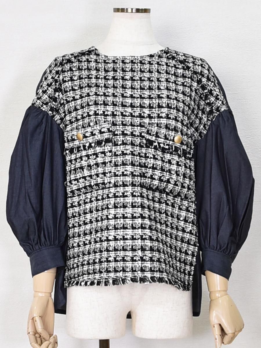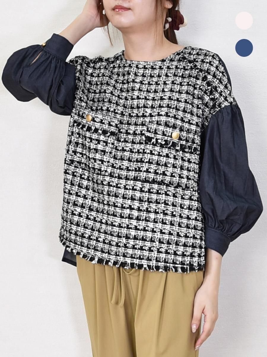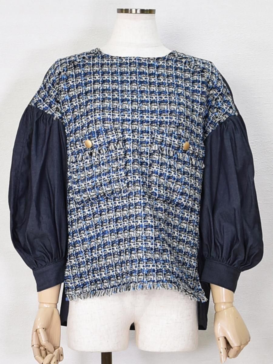 trois (トロワ) MIXツィード × デニム袖ボリュームプルオーバー