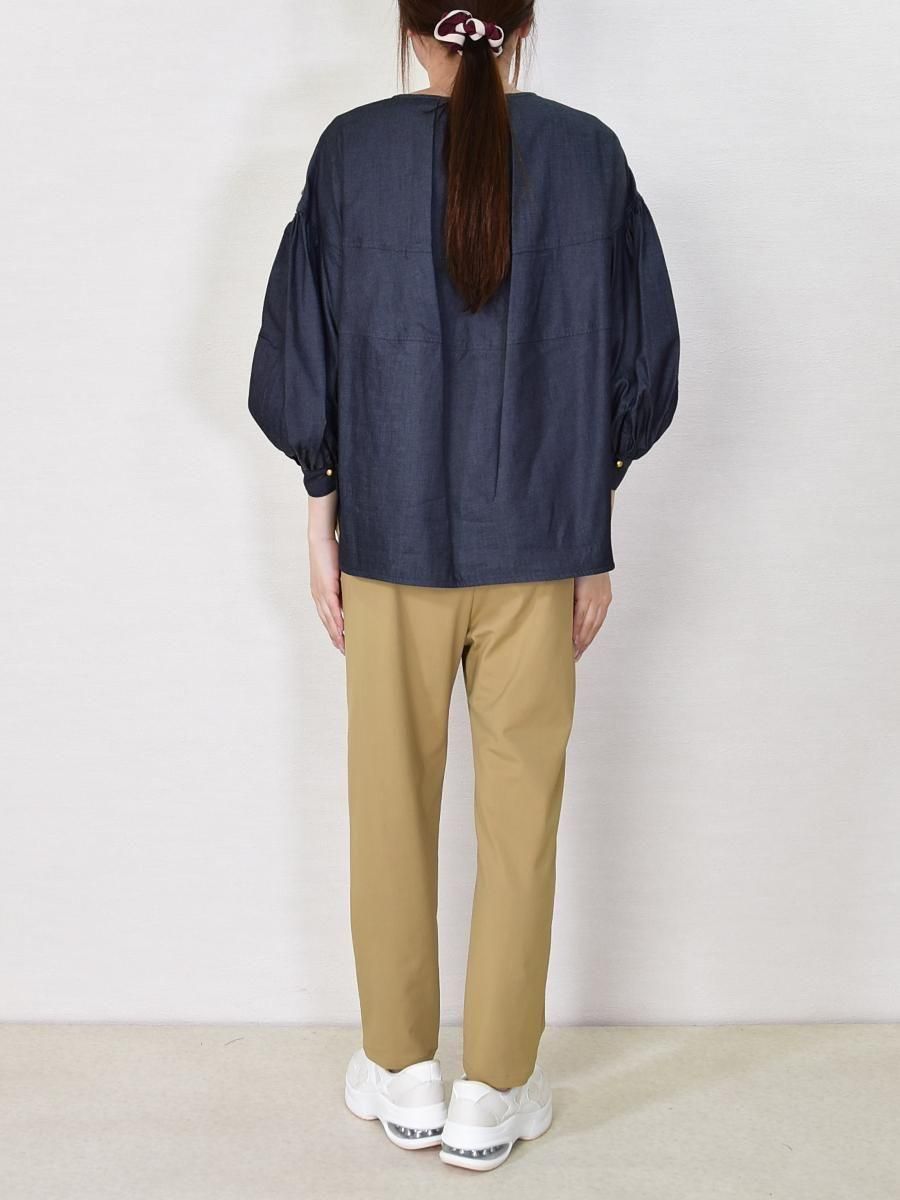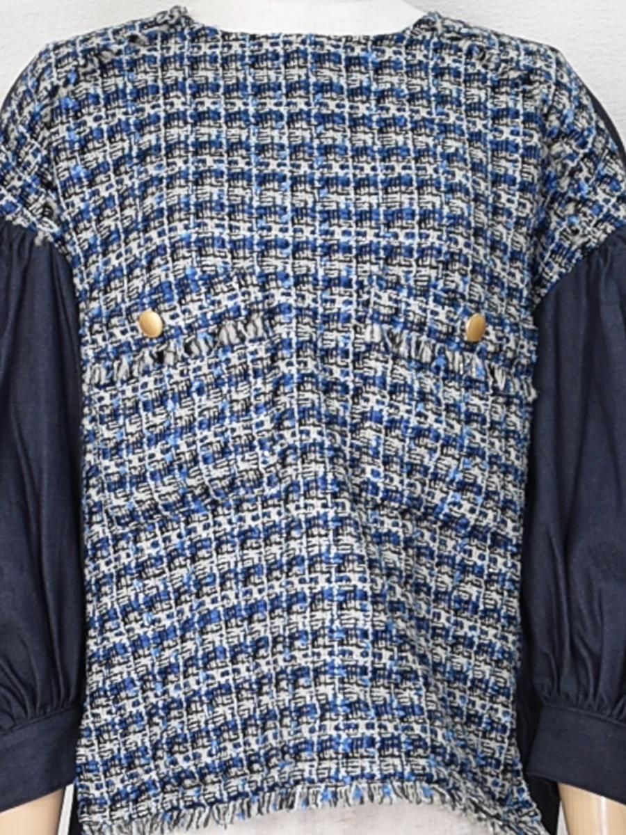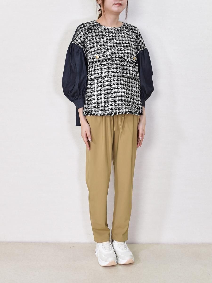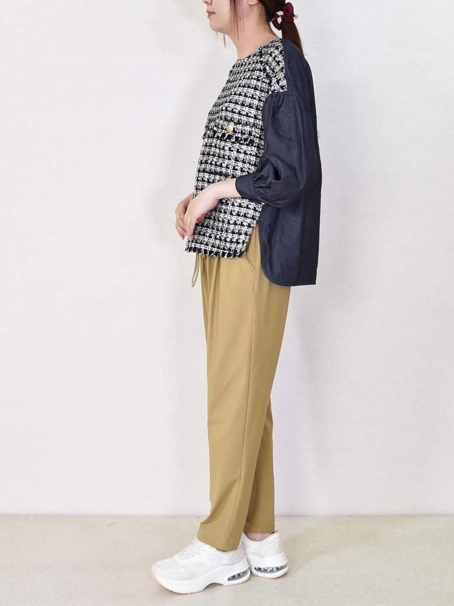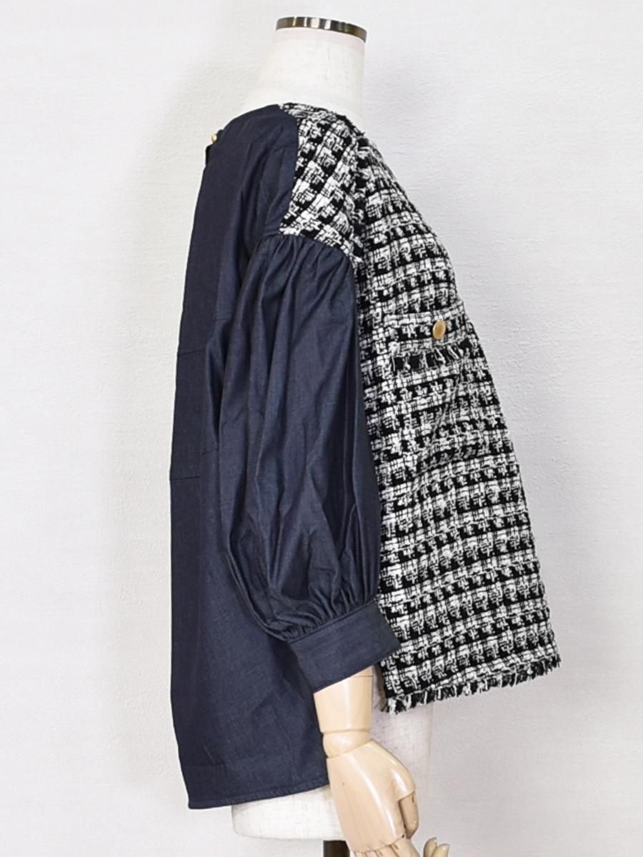 trois (トロワ) MIXツィード × デニム袖ボリュームプルオーバー