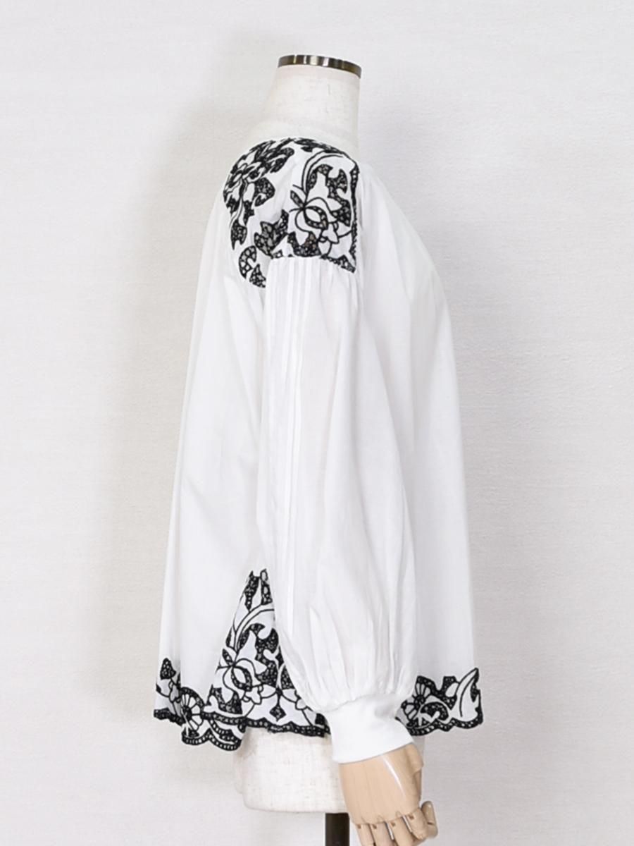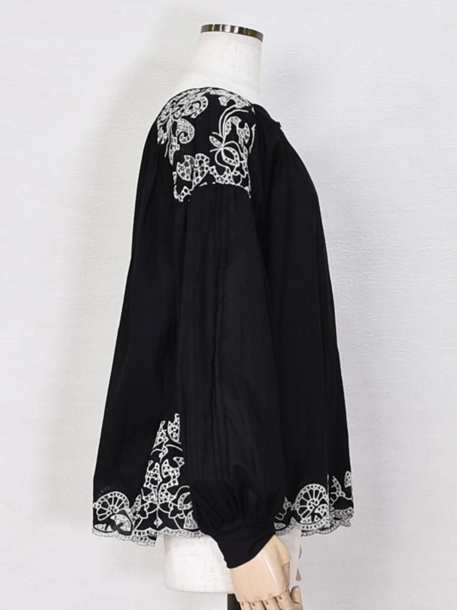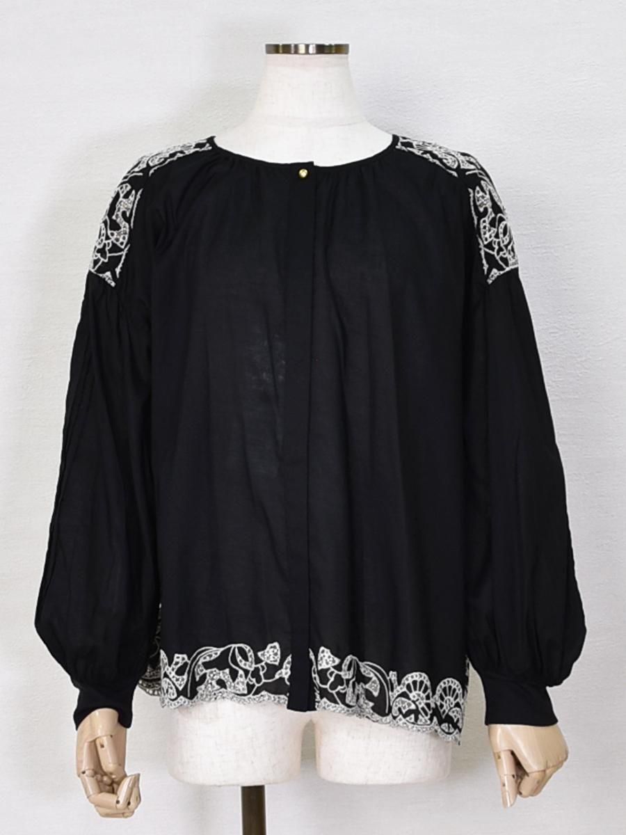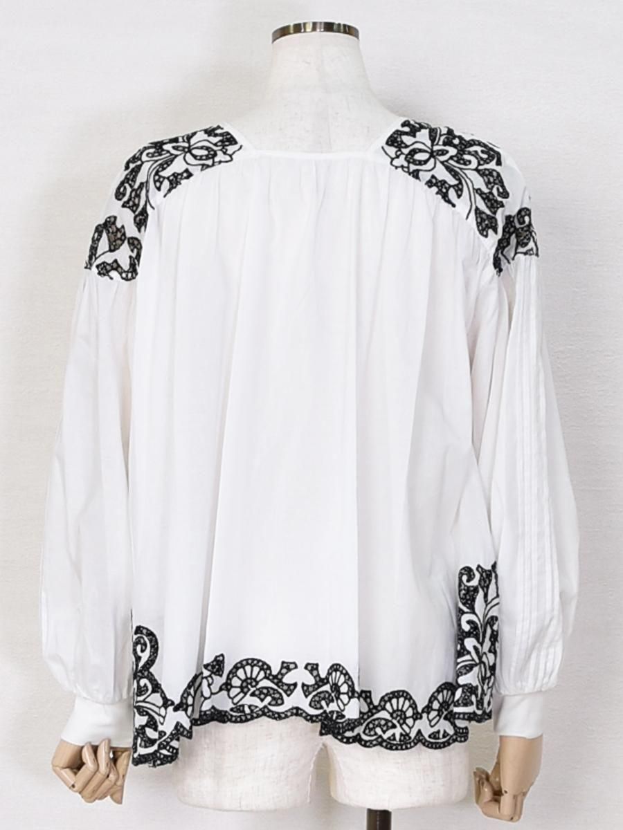 trois(トロワ)の刺繡ギャザーブラウス。さらりとした肌当たりの良いコットン100%のブラウスです。
