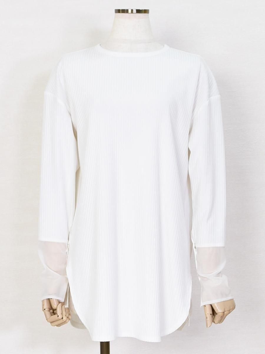 袖口にシアー素材を切り替え、軽やかなアクセントをプラス。