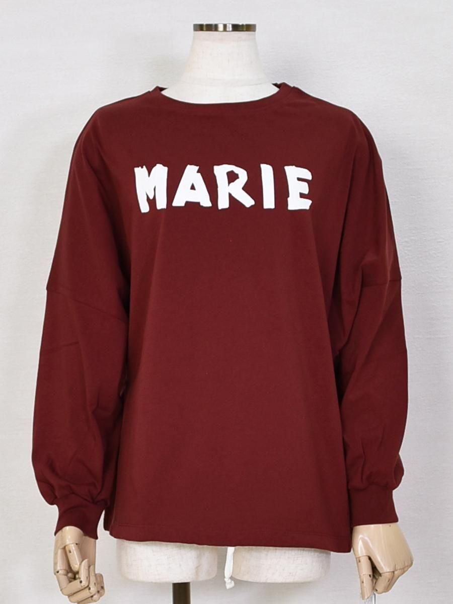 MARIED'OR(マリードール)のテープロゴ裾しぼりプルオーバー。フロントにロゴを大胆にプリントしたロングスリーブTシャツ。