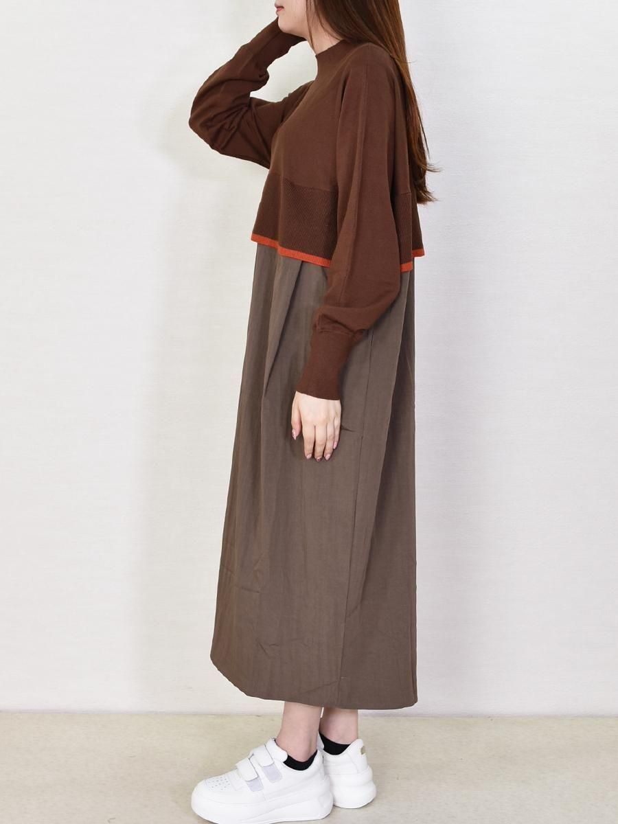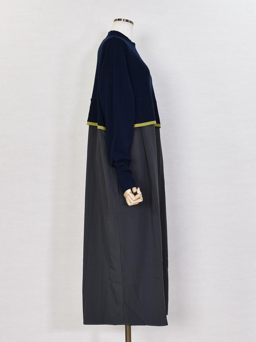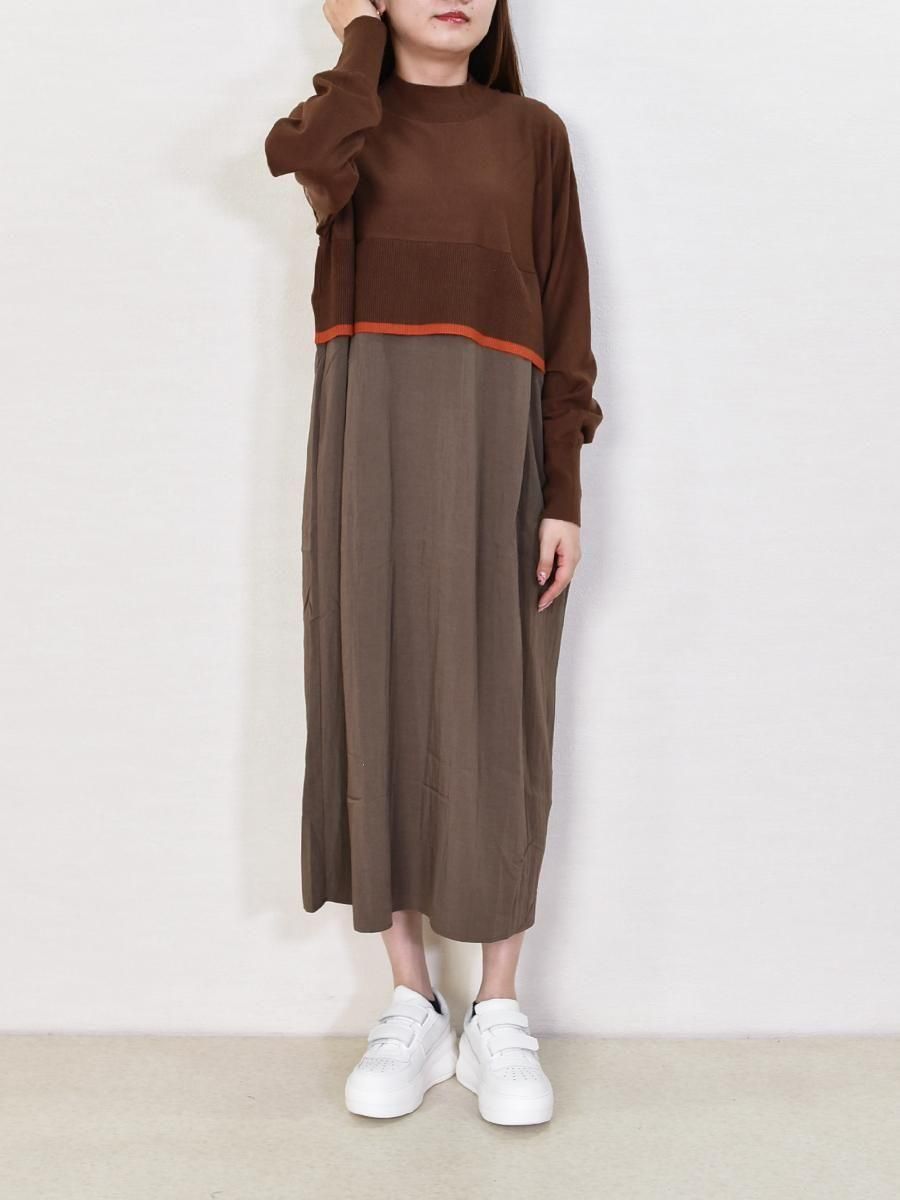 EMUE(エミュー)のラインニットドッキングワンピース。伸縮性のあるニットとさらりとした布帛で切り替えたワンピース。