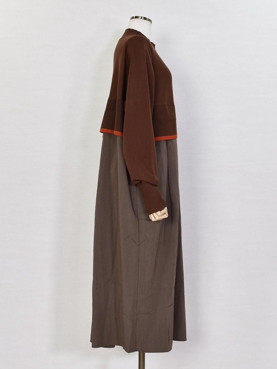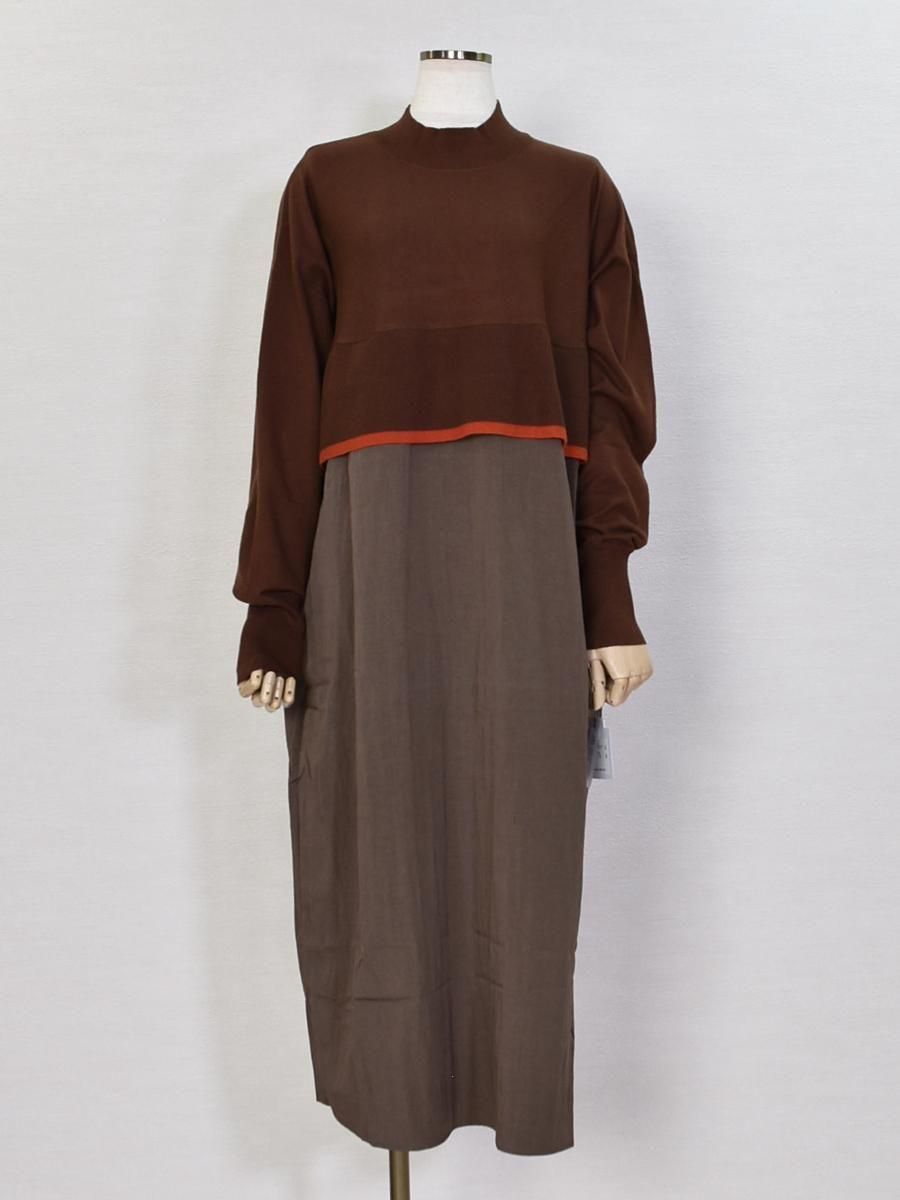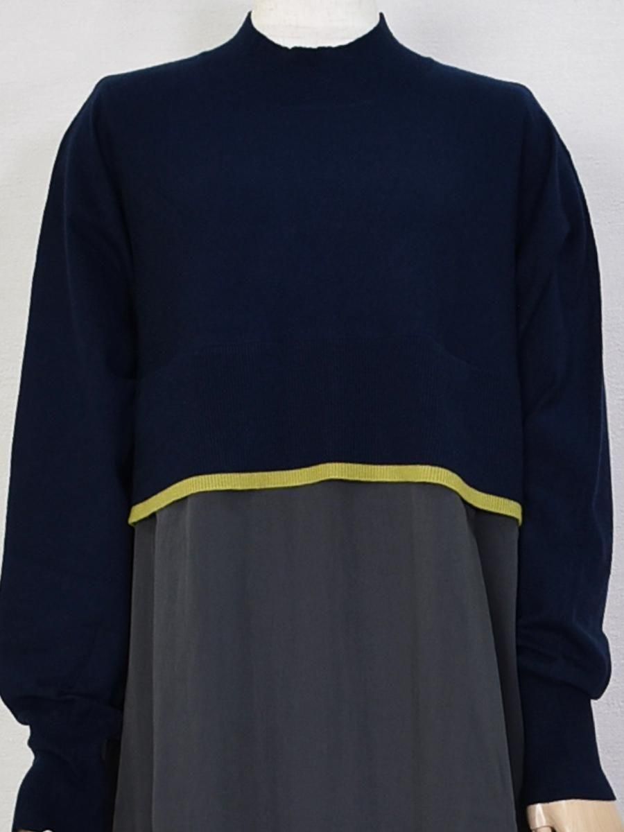 EMUE(エミュー)のラインニットドッキングワンピース。伸縮性のあるニットとさらりとした布帛で切り替えたワンピース。