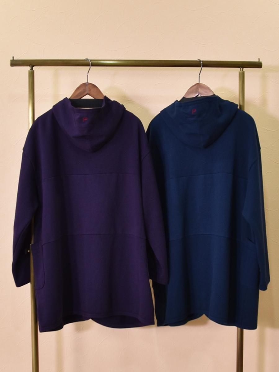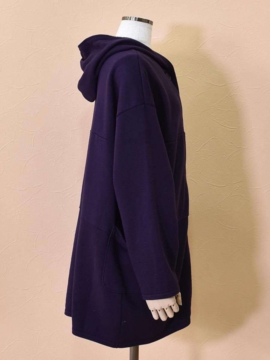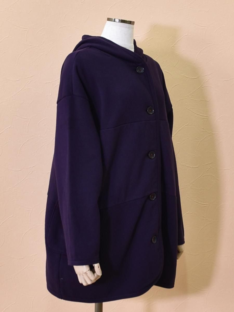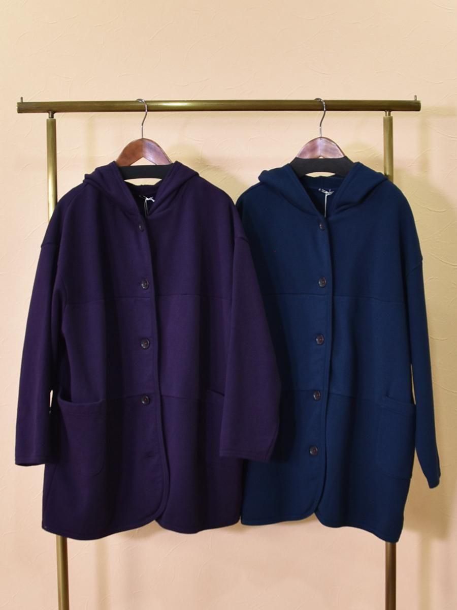 pas a pas(パスアパス)の裏毛切替パーカー。深みのあるカラーが印象的なフード付きコート。