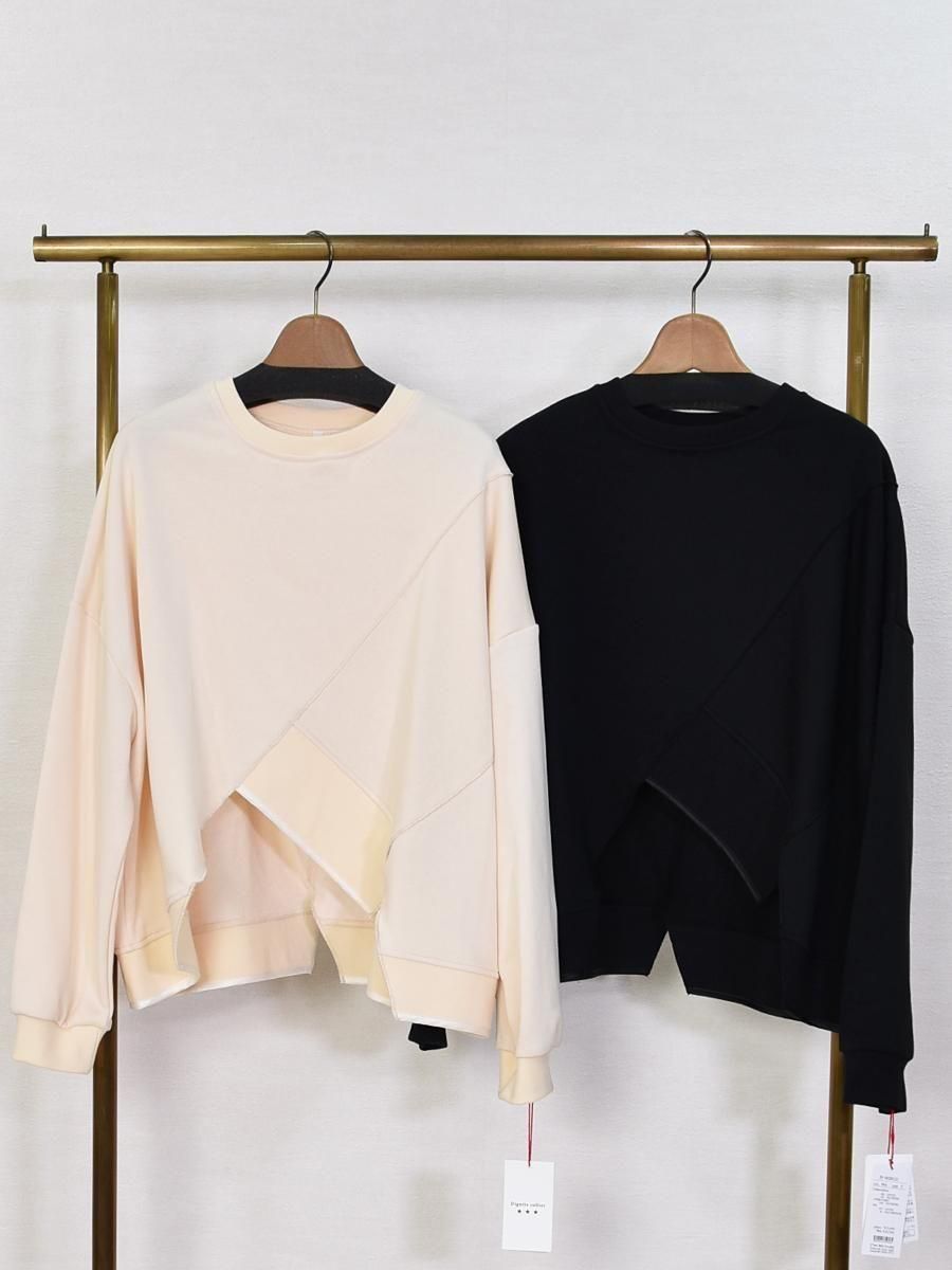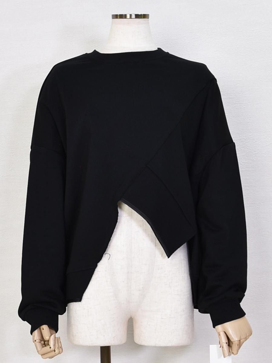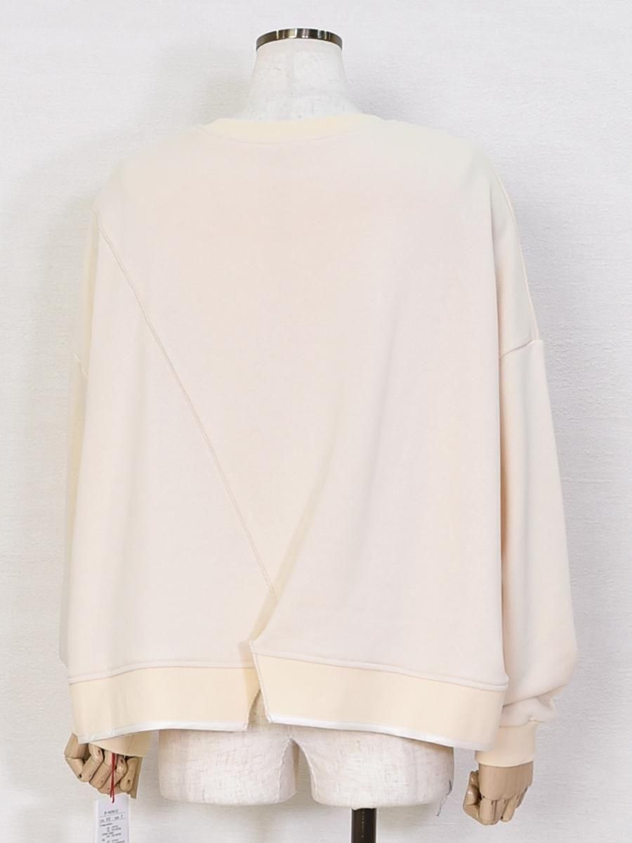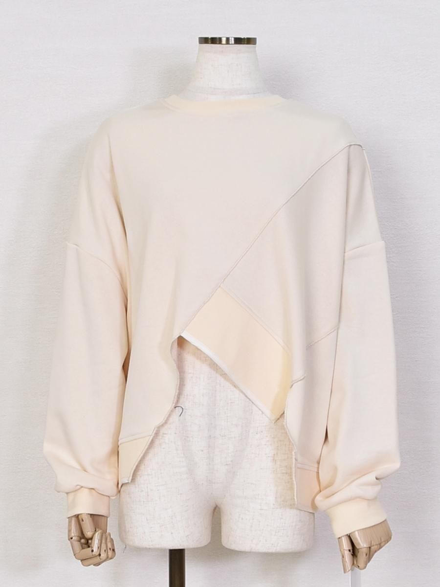 Dignite collier(ディニテコリエ)の裏毛アシメプルオーバー。アシンメトリーなカッティングが印象的なデザインスウェット。