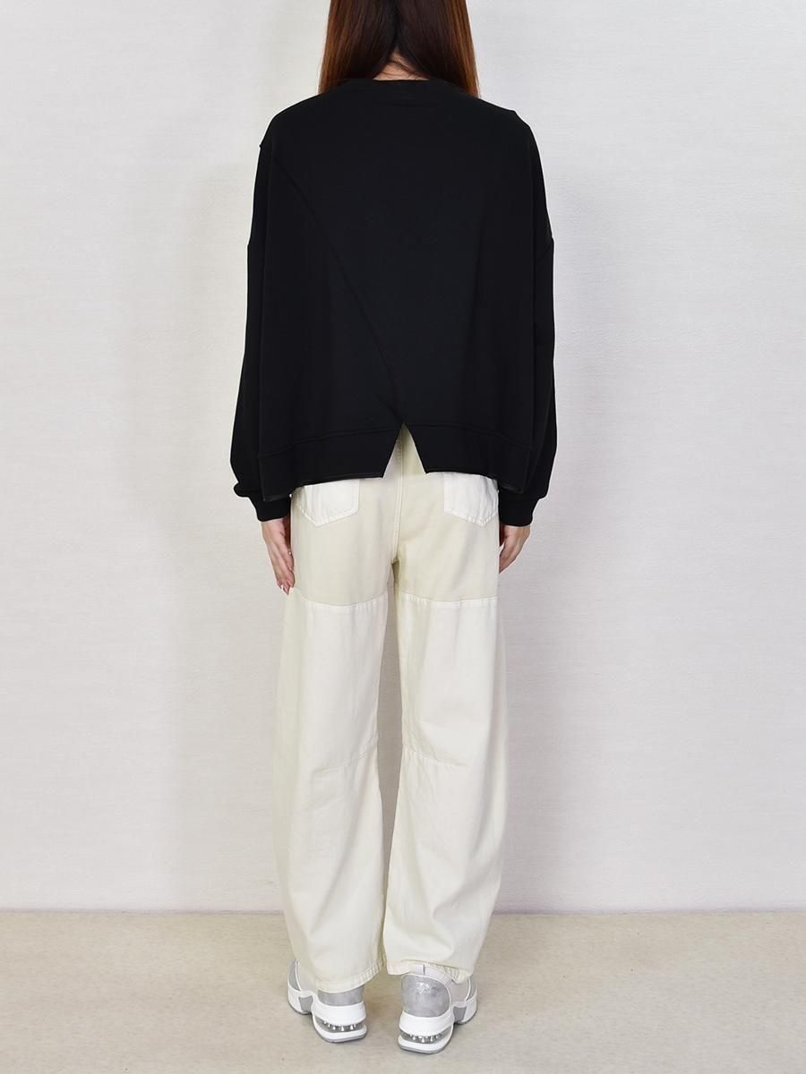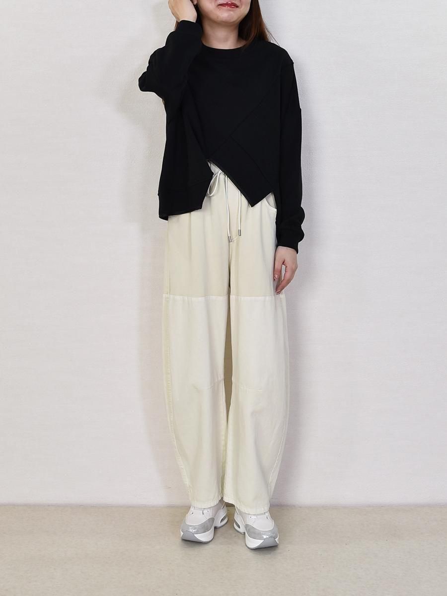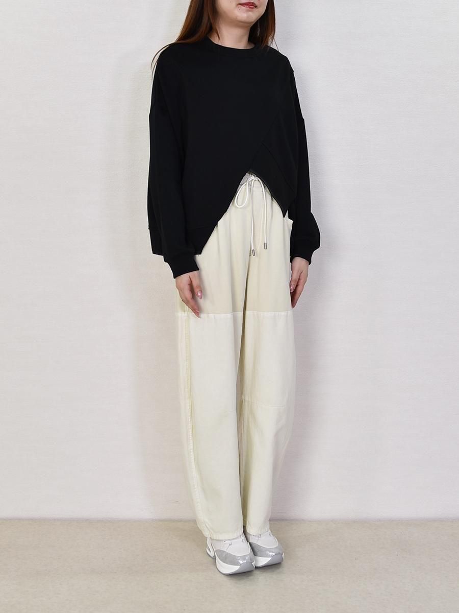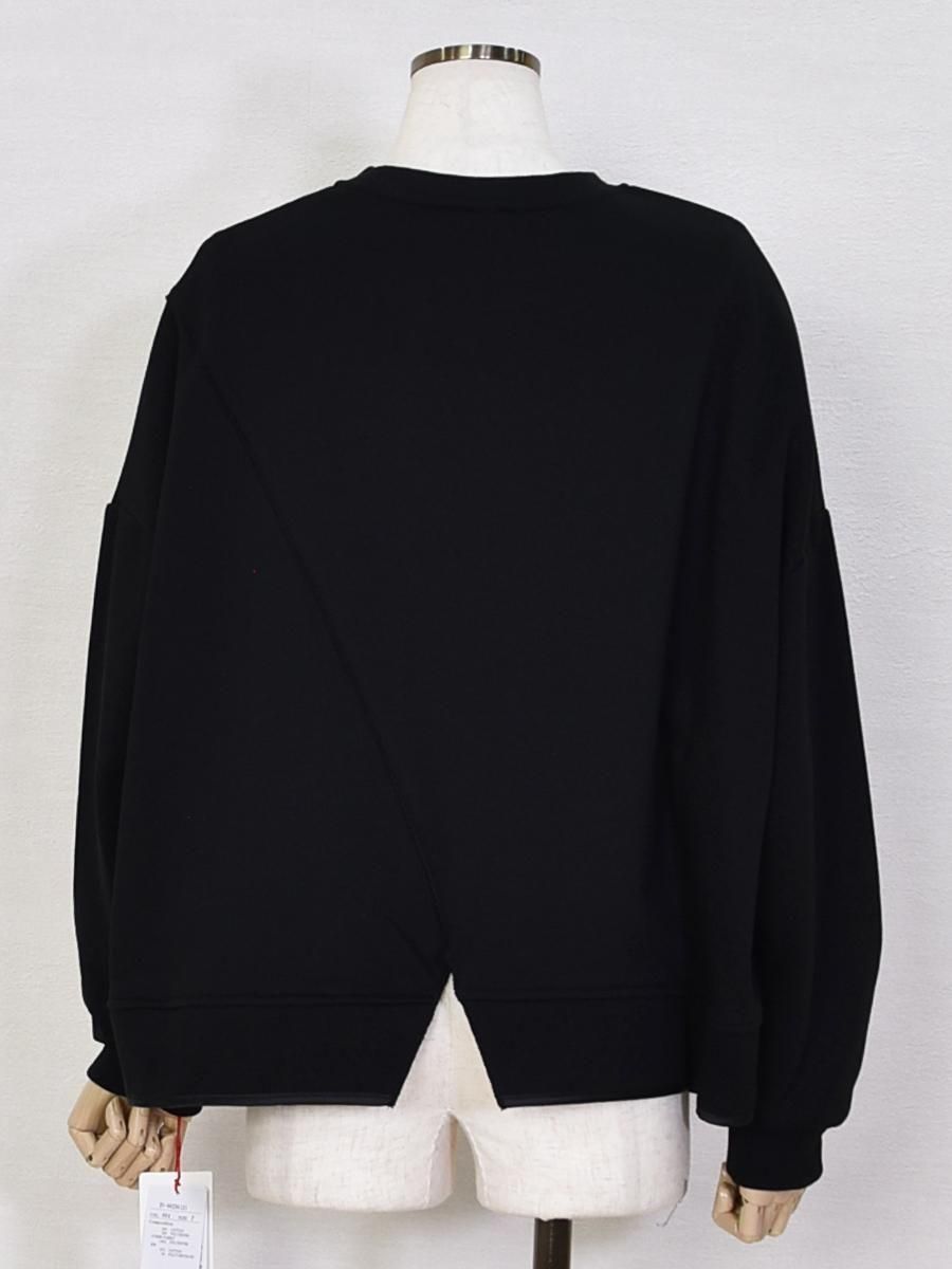 Dignite collier(ディニテコリエ)の裏毛アシメプルオーバー。アシンメトリーなカッティングが印象的なデザインスウェット。